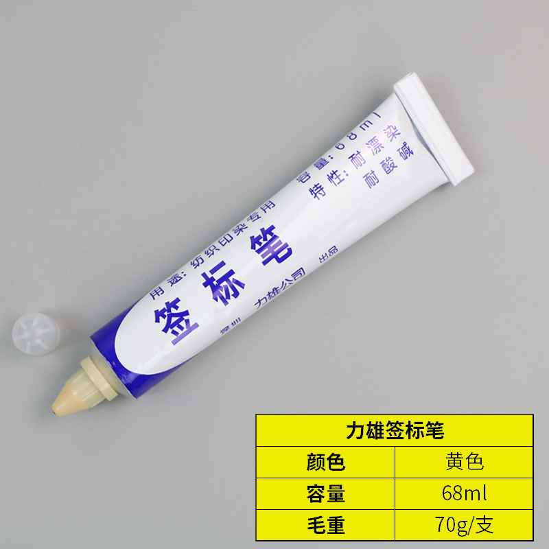 黄油笔主要在纺织印染工业中在各种纺织品上作标记之用,通用于棉、麻、毛、化纤、混纺等所有纺织品