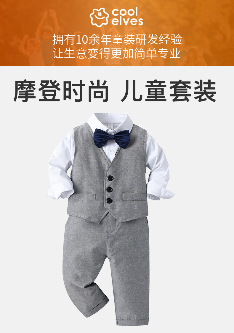80码-90码-100码-110码-120码-130码 跨境童装批发一手货源春秋新款三件套儿童衣服宝宝带外套男童套装