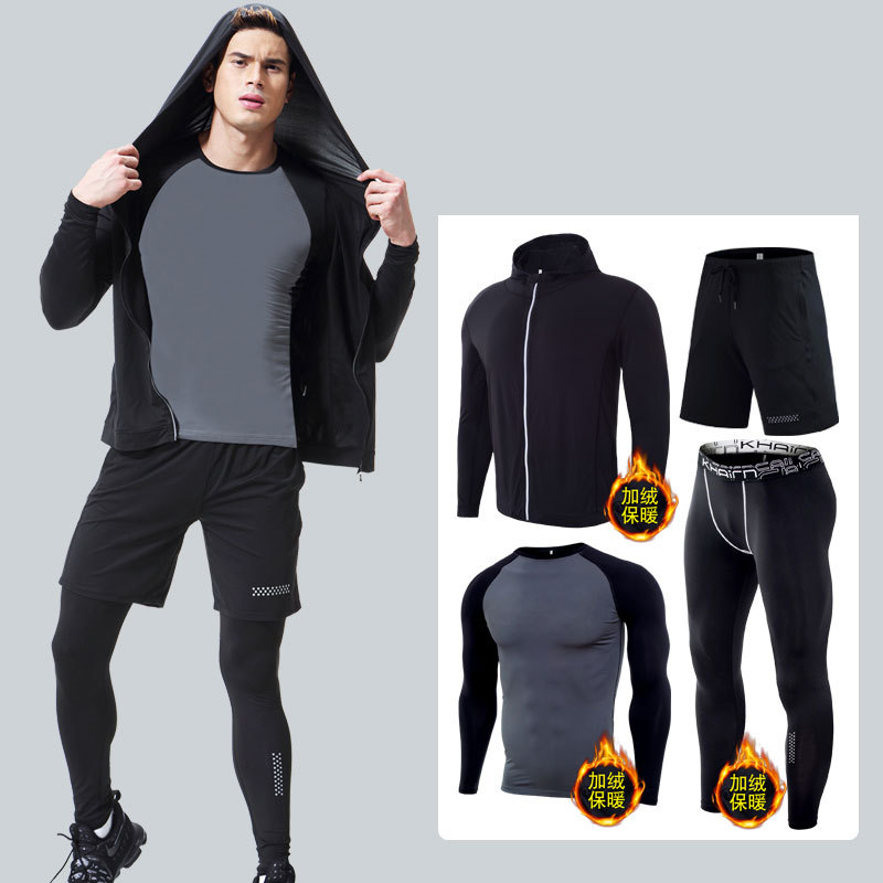 2023 피트니스 세트 남성 벨벳 따뜻한 스포츠 세트 야외 농구 훈련 런닝베이스 긴 소매 스타킹