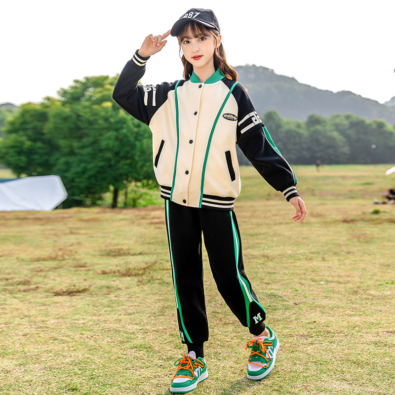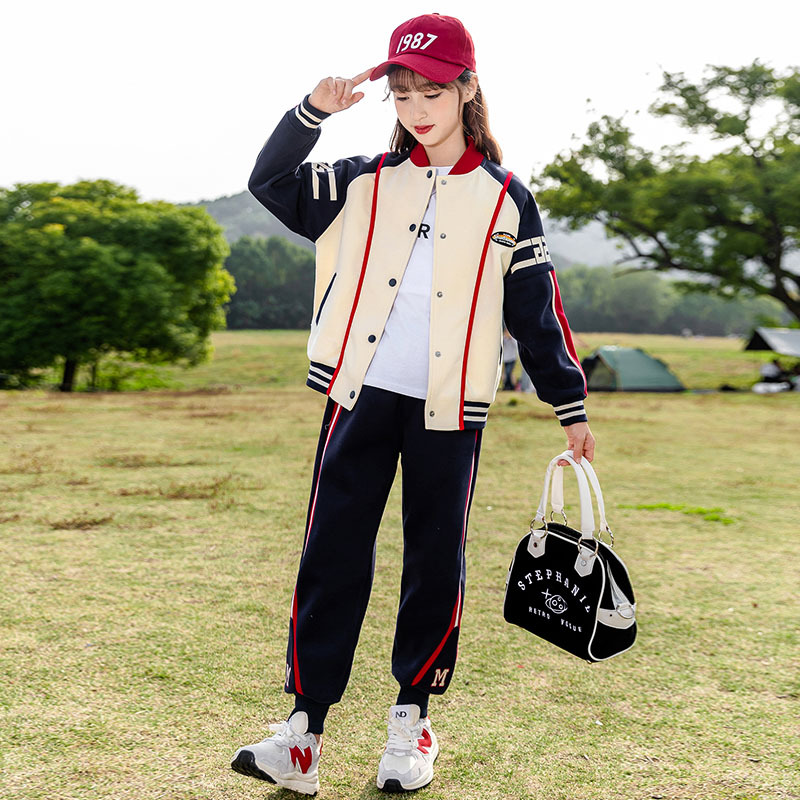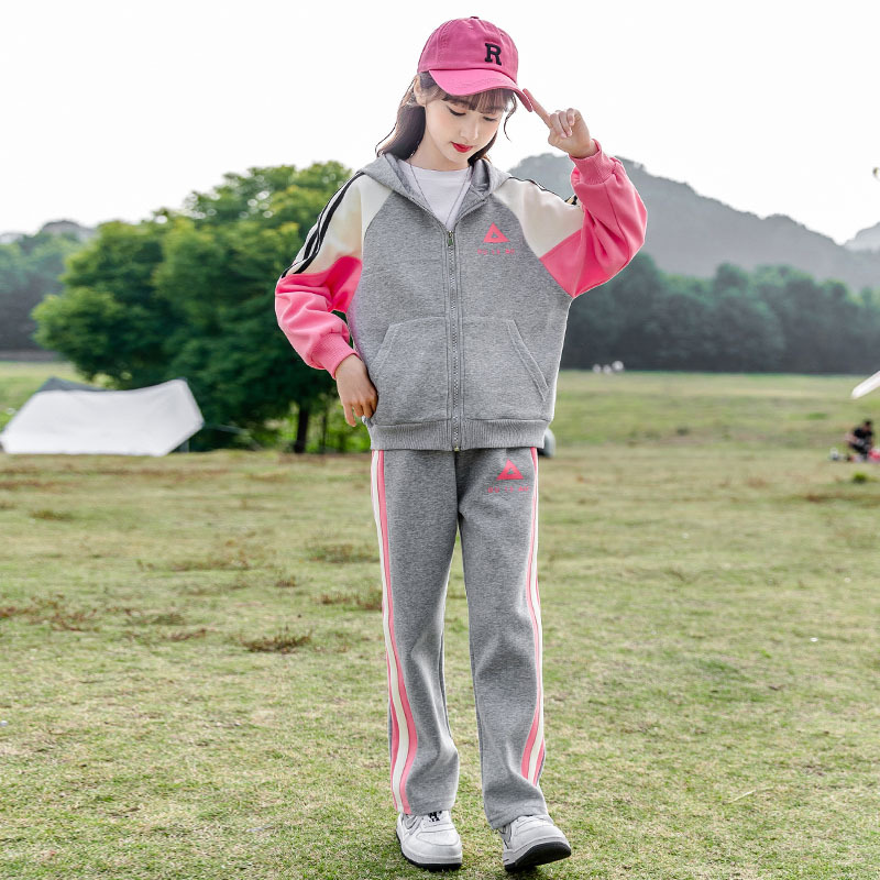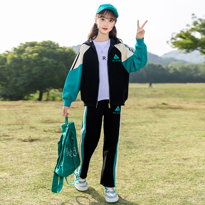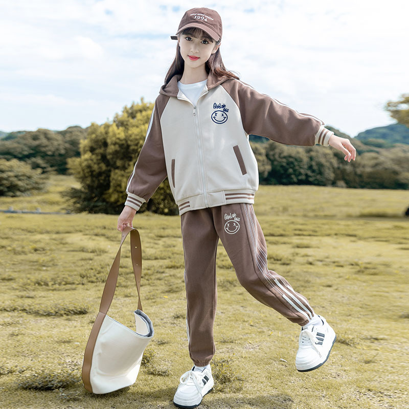 Zhili 아동복 봄 가을 신상품 니트 여아복 세트 스포츠 봄옷 중대형 아동복 어린이 패션 투피스 세트스토어 가기