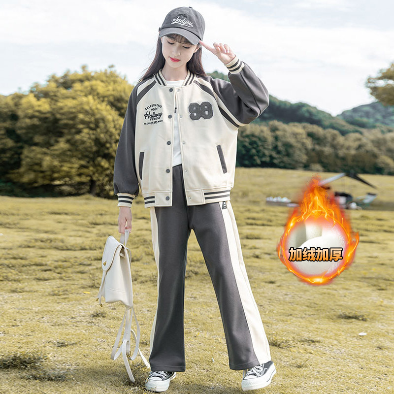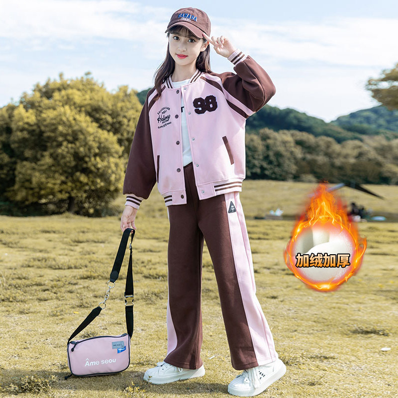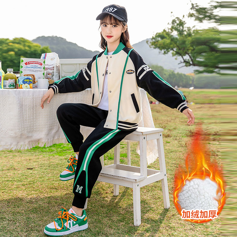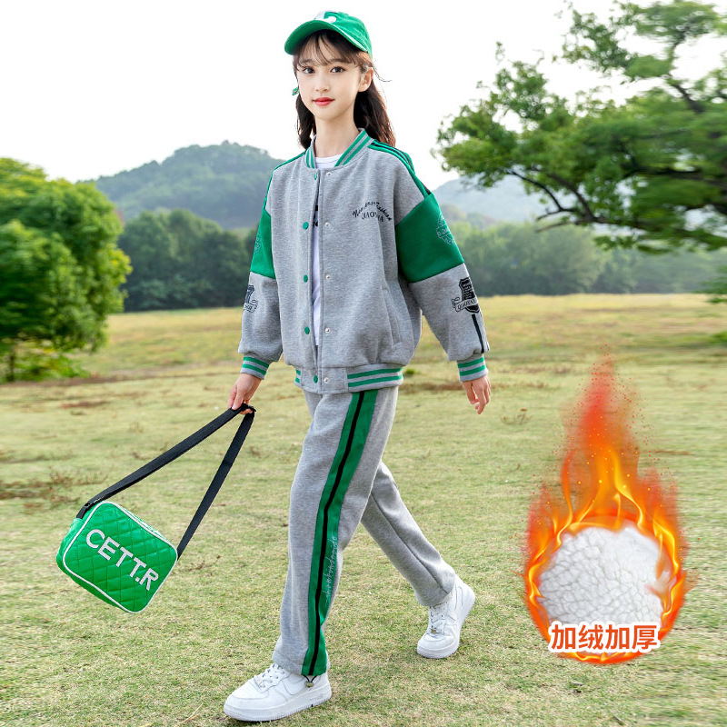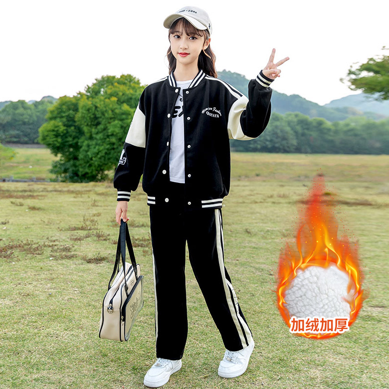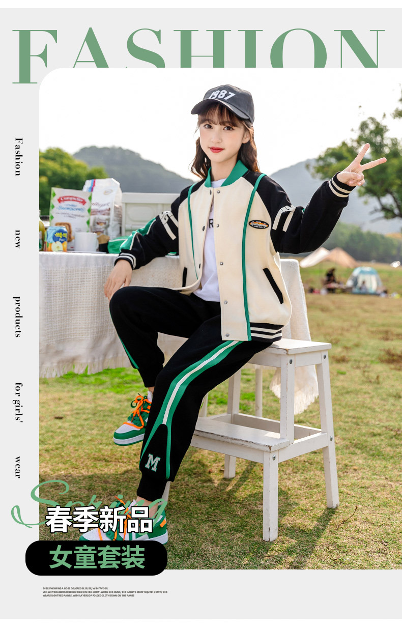 Zhili 아동복 봄 가을 신상품 니트 여아복 세트 스포츠 봄옷 중대형 아동복 어린이 패션 투피스 세트스토어 가기