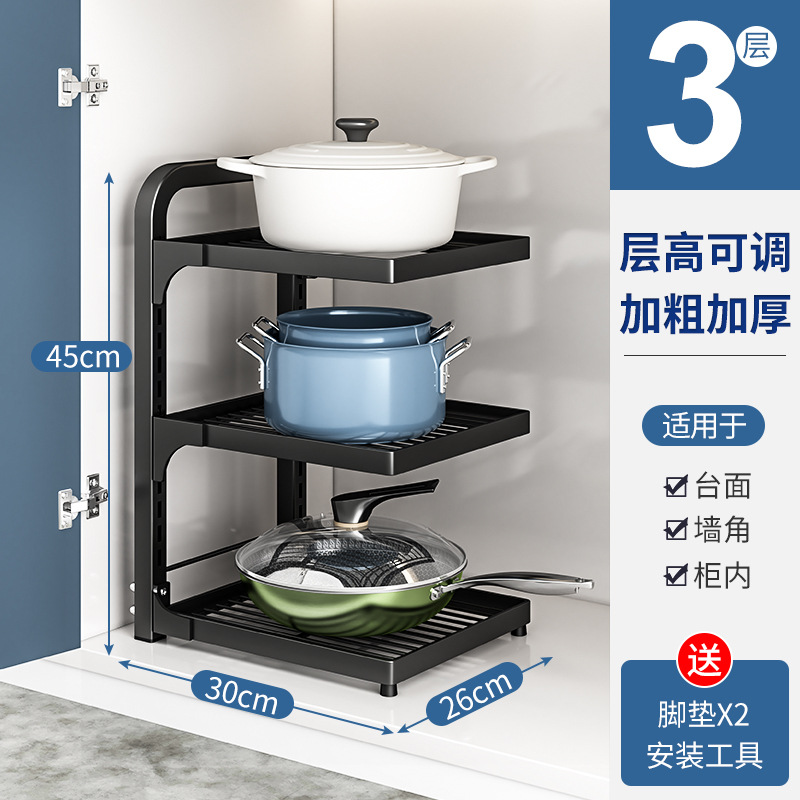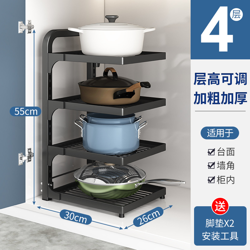 주방 냄비 랙 스토리지 랙 싱크대 캐비닛 아래 가정용 다층 냄비 보관 랙 계층화 냄비 랙