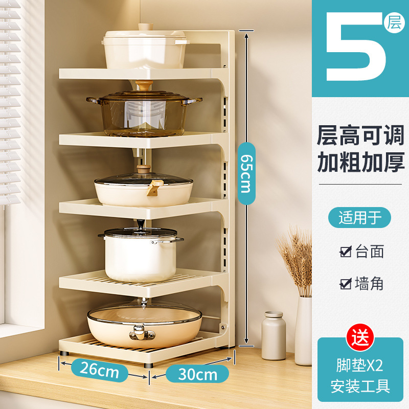 • 탄소강 사각 튜브 업그레이드 냄비 랙 * 크림 화이트 5 레이어 * 레이어 높이 조절 가능