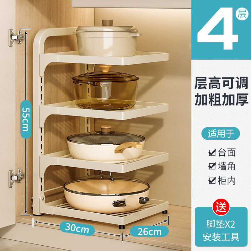 주방 냄비 랙 스토리지 랙 싱크대 캐비닛 아래 가정용 다층 냄비 보관 랙 계층화 냄비 랙스토어 가기