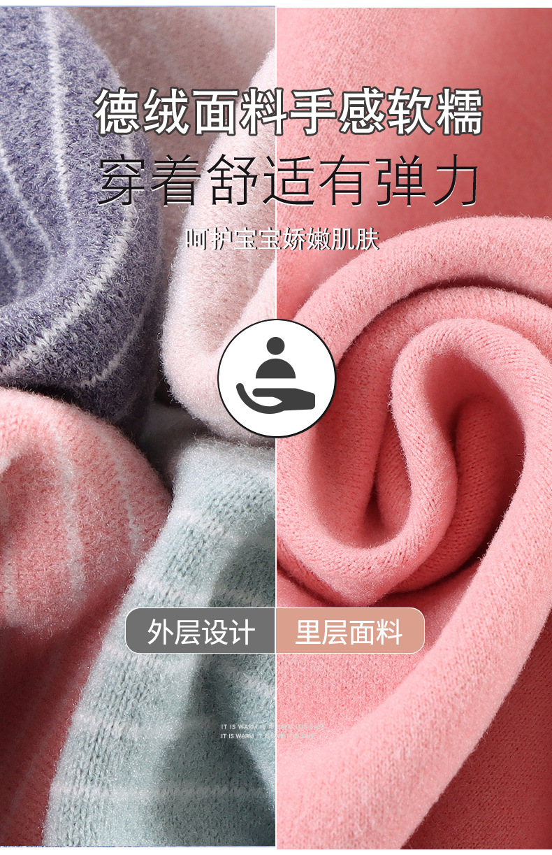 어린이용 독일산 벨벳 속옷 세트, 무봉제 중간목 아기 가을옷, 가을바지, 가을겨울용 남아 여아 두꺼운 보온복