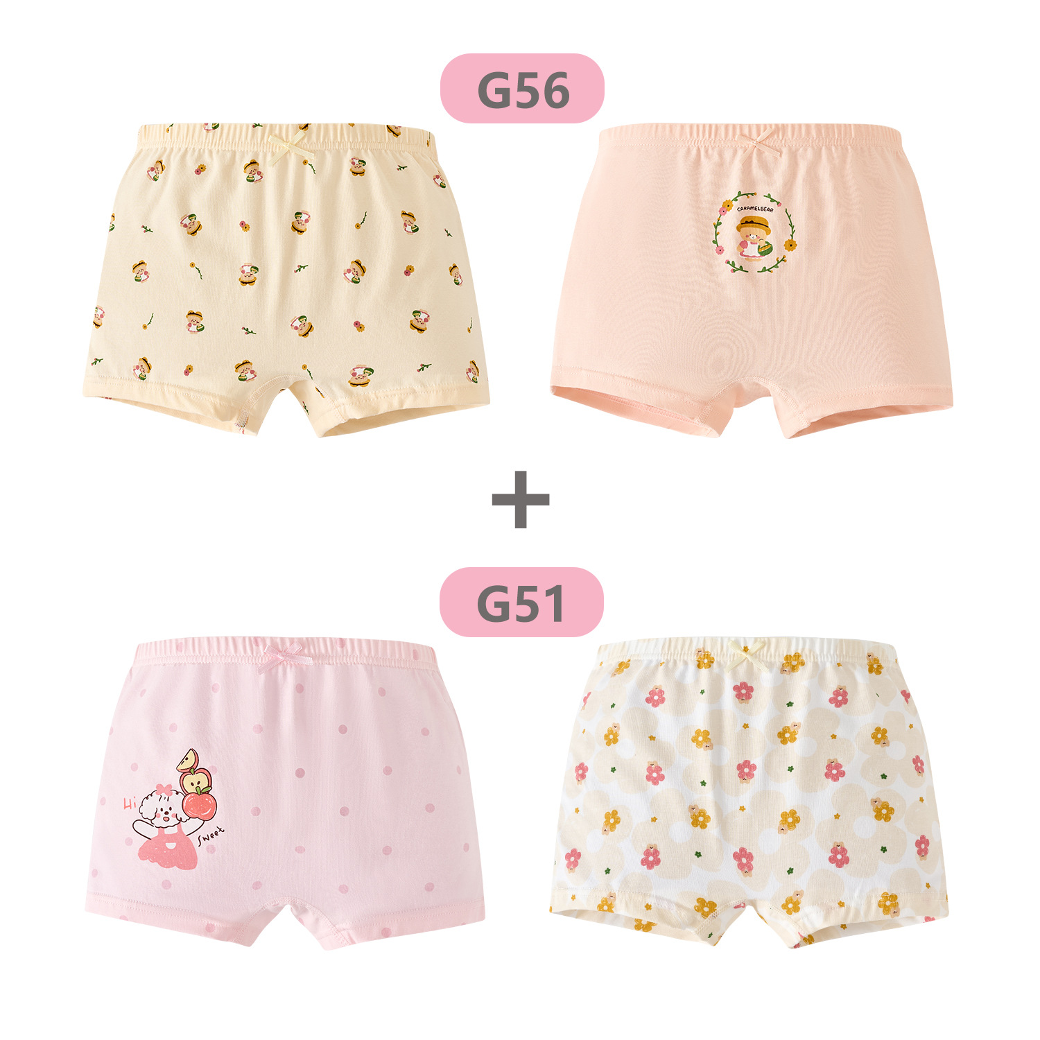 Paisen 곰면 여아 속옷 도매 항균 4 봉지 어린이 박스형 아기 만화 반바지스토어 가기