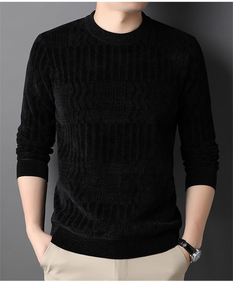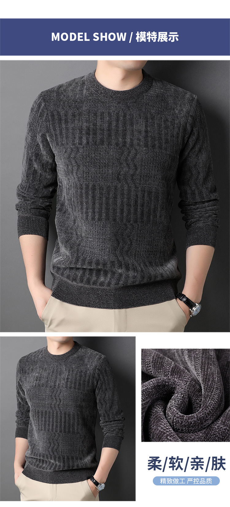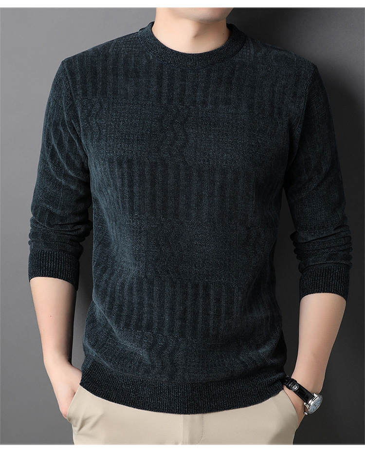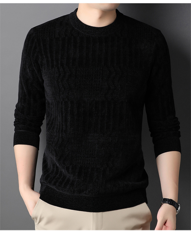 가을과 겨울 셔닐 기모 남자 니트웨어 탑 청소년 라운드 넥 캐주얼 베이스 셔츠 겉옷 스웨터 남자의 머리