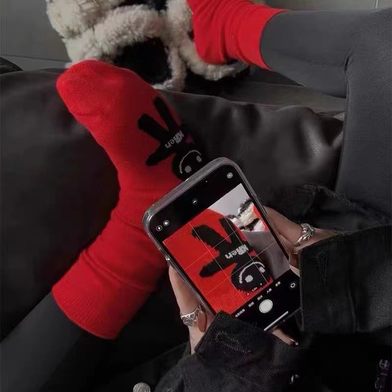 남녀 커플을위한 새해 빨간 양말 드래곤 년 좋은 행운 큰 빨간 양말 유행 사이버 축하 스포츠 미드 튜브 코튼 양말스토어 가기