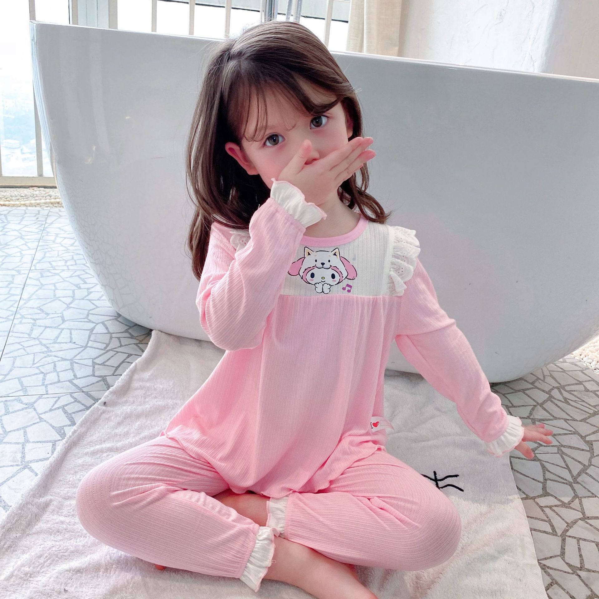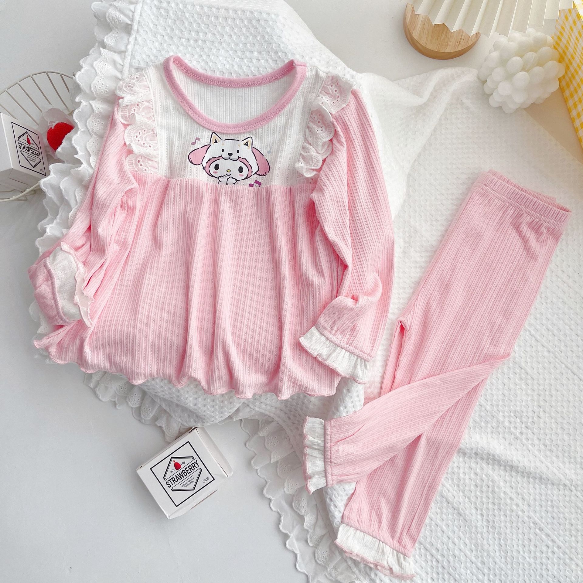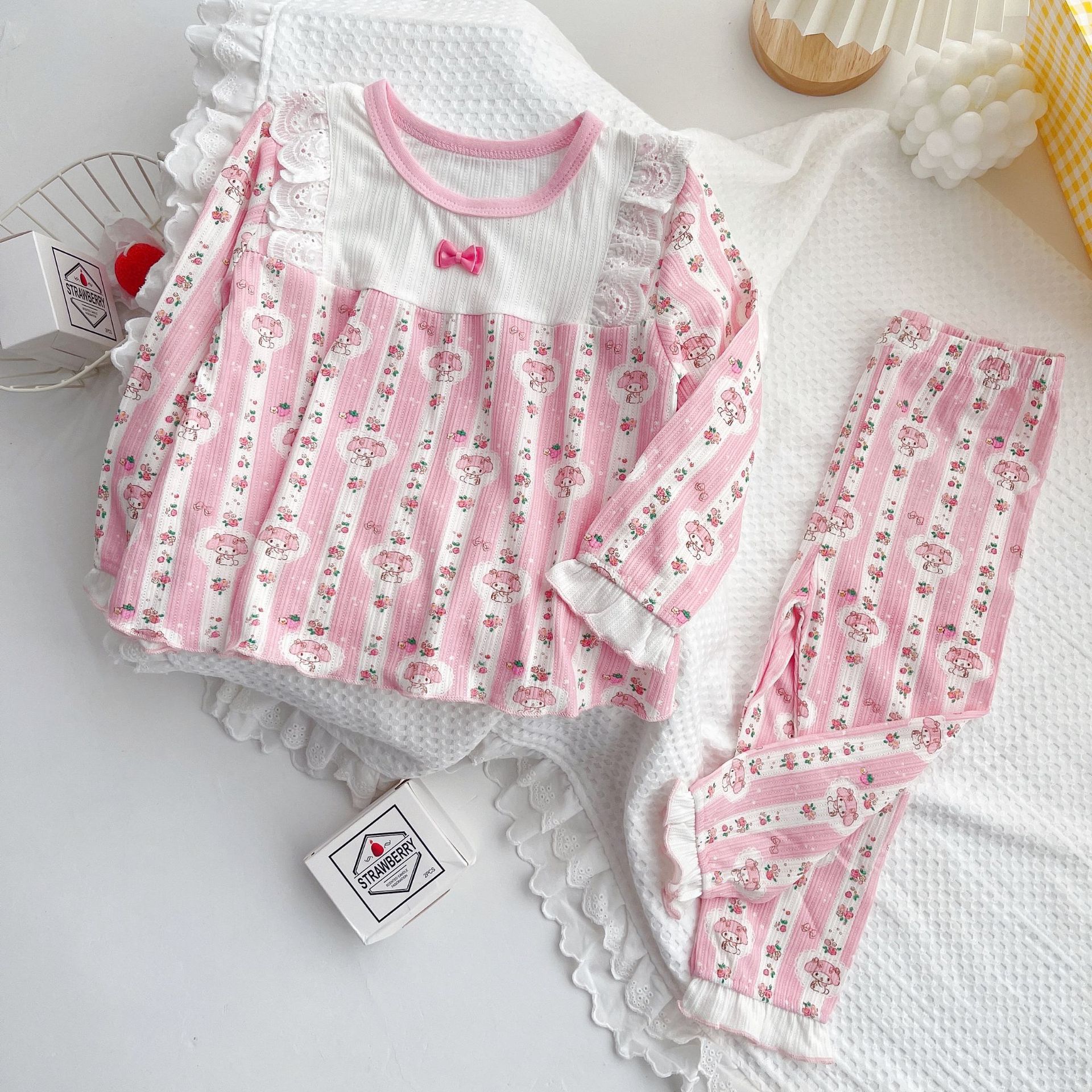 2022 여자 봄 긴 소매 잠옷 귀여운 가정 옷 사계절 에어컨 세트 부드러운 스트레치 자카드 클래스 a 레이스스토어 가기