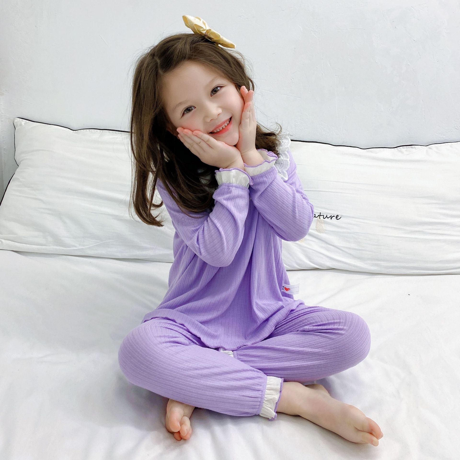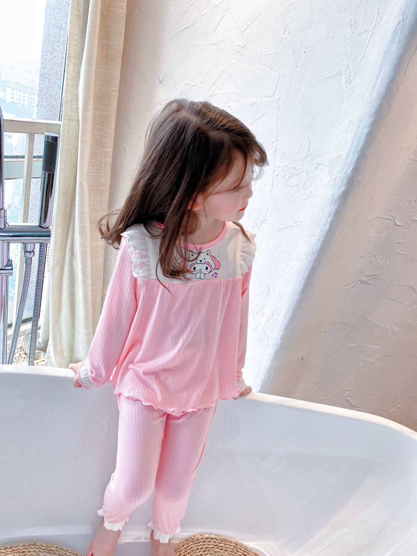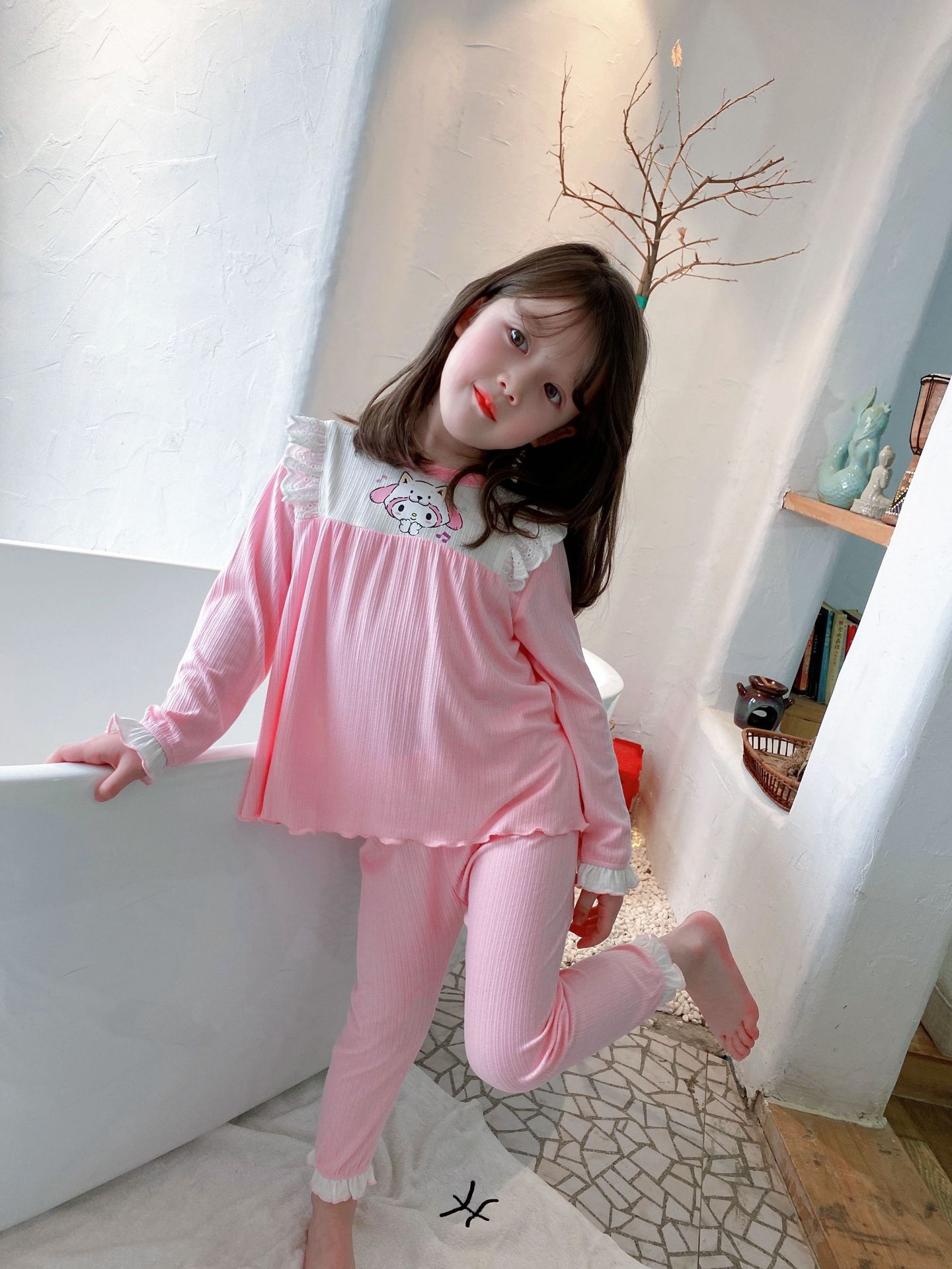 2022 여자 봄 긴 소매 잠옷 귀여운 가정 옷 사계절 에어컨 세트 부드러운 스트레치 자카드 클래스 a 레이스스토어 가기