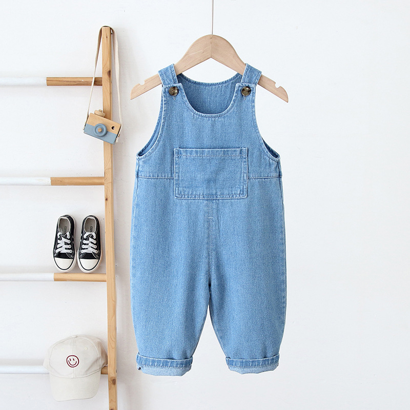 Ins Korean Children Wear 2024 새로운 어린이 스트랩 팬츠 꽃병 스타일 부드러운 데님 스트랩 팬츠스토어 가기