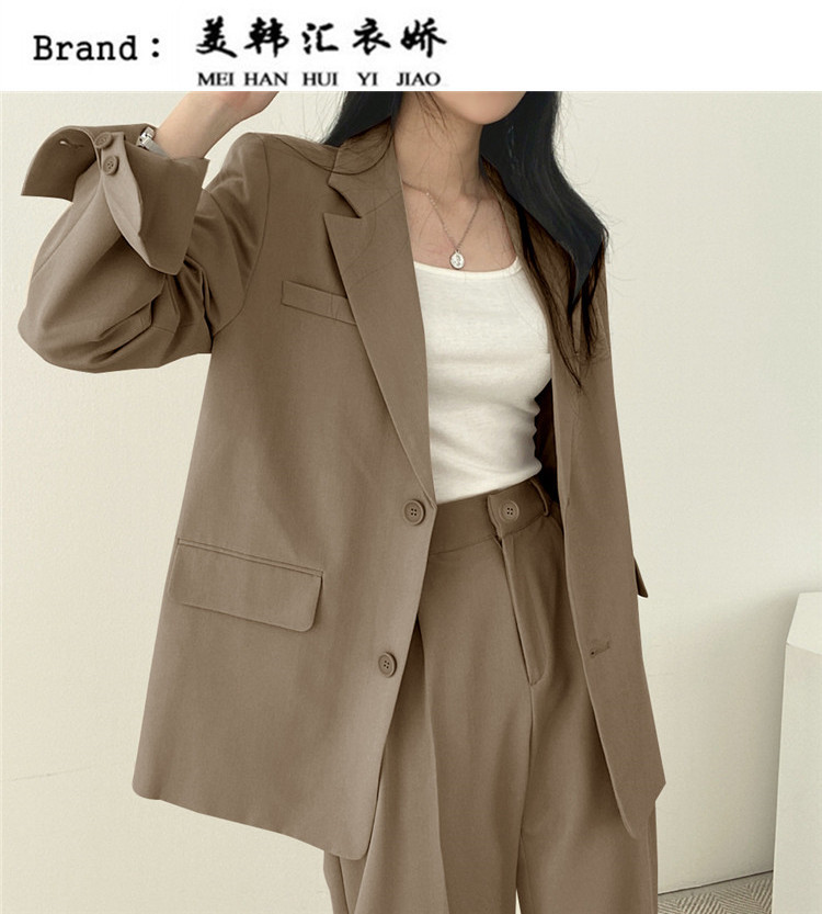 카키색 여성용 블레이저 2023 봄 가을 정장 세트 여성용 우아한 상의 출퇴근용 스플라이싱 디자인스토어 가기