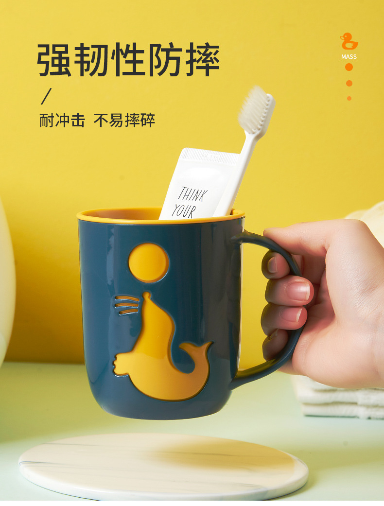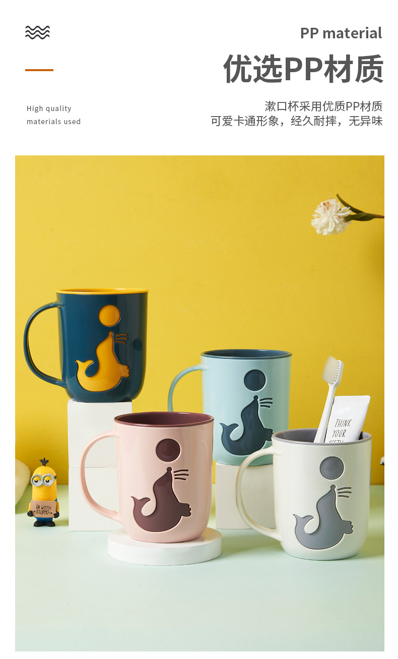 귀여운 구강 세척제 컵 만화 가정용 플라스틱 브러시 컵 바다 사자 높은 색상 가치 더블 레이어 커플 세척 컵 마구 도매