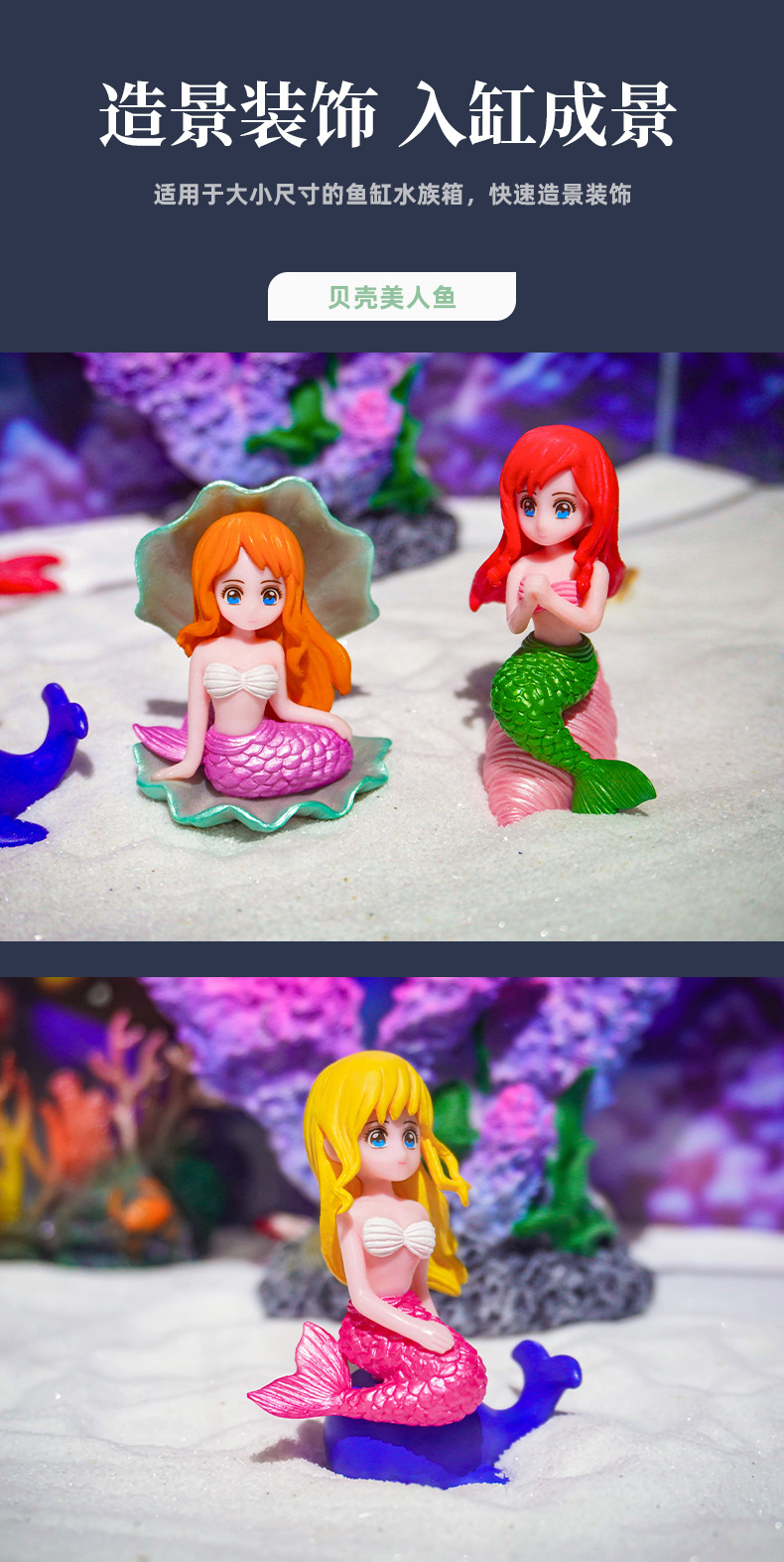 국경을 넘는 수족관 장식품 인어 공주 도미 수조 거실 소형 미니 피규어 4종