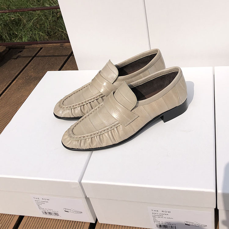 행 봄과 여름 새로운 복고풍 패션 정품 가죽 싱글 신발 캐주얼 가죽 신발 장어 가죽 로퍼 여성 하이힐