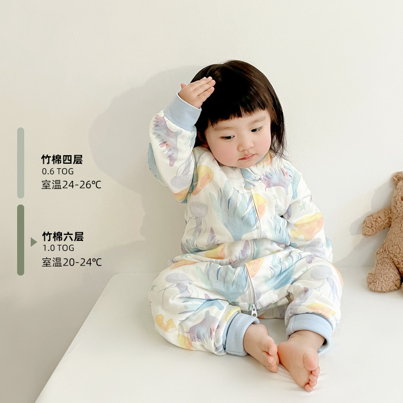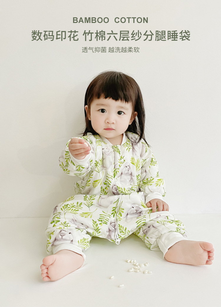 아기용 다리 분리형 방수 이불, 어린이 잠옷, 사계절용, 6겹 대나무 면 거즈 아기 침낭, 봄과 가을용스토어 가기