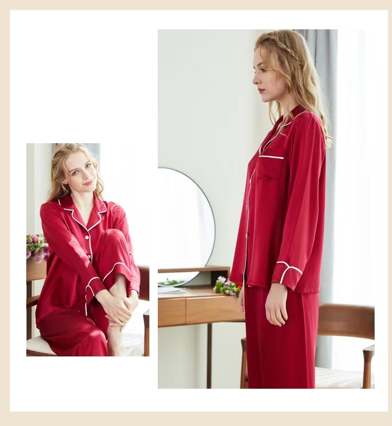 집에 머무르는 아름다움 비결 실크 잠옷 세트 19mm 뽕나무 실크 가정 옷 긴 소매 바지 플러스 사이즈스토어 가기