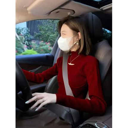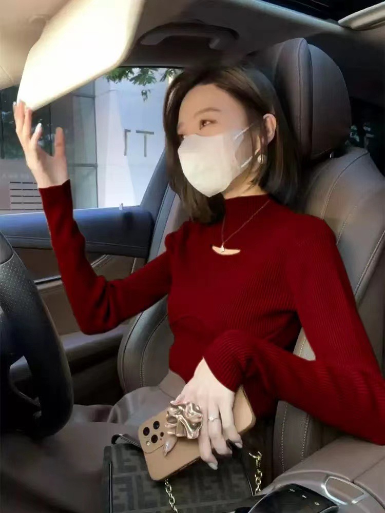 프랑스 스타일 향기로운 스타일 고급 소프트 왁스 크리스마스 레드 스웨터 여성용 봄과 가을 바닥 내부 슬림핏 스웨터 탑