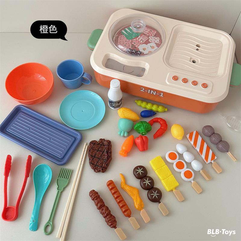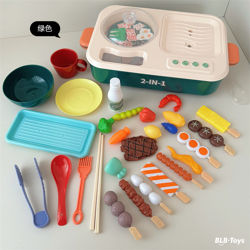 가벼운 음악이있는 크로스 보더 투인원 냄비 바베큐 기계 다기능 스프레이 바베큐 오븐 어린이 놀이 장난감스토어 가기