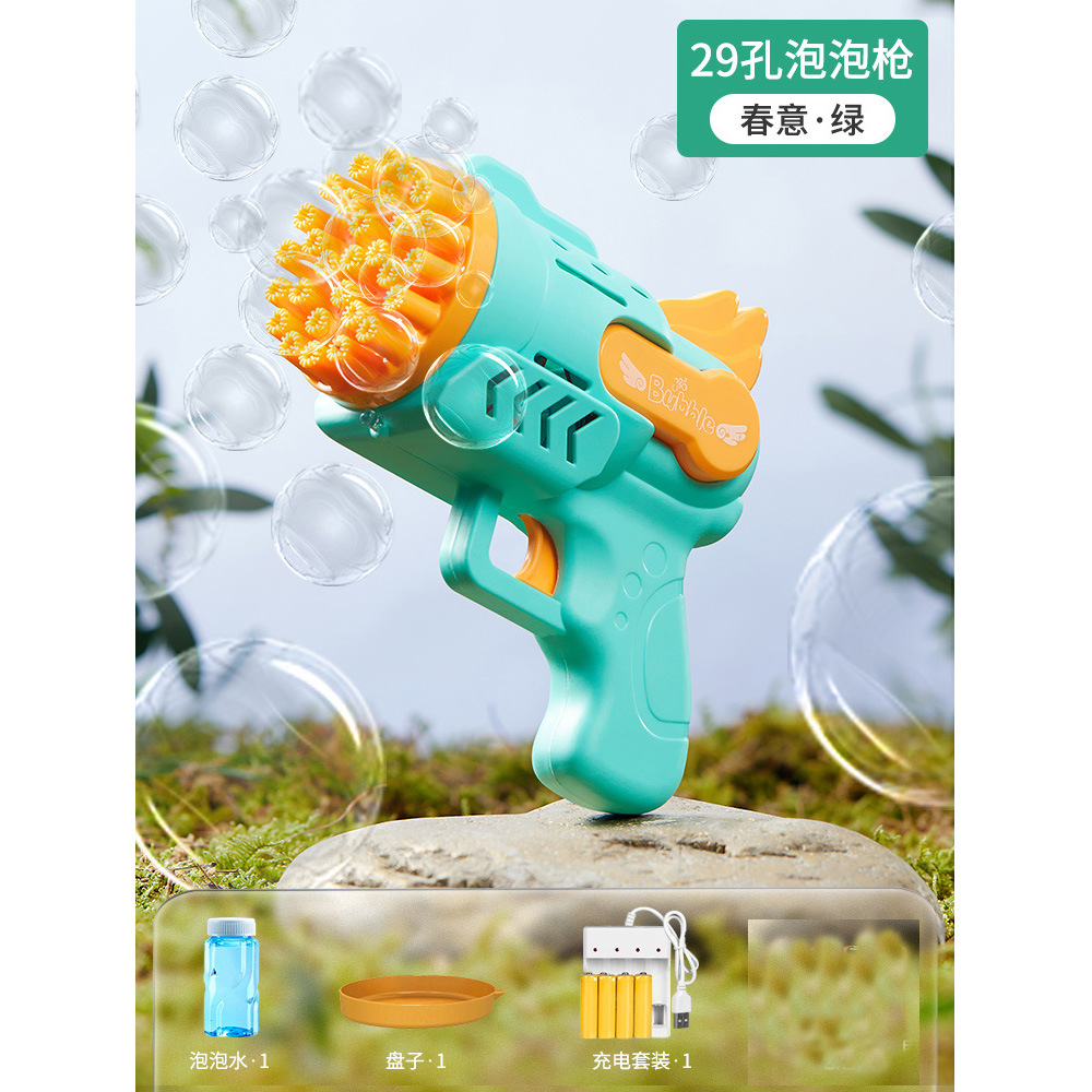 어린이 버블 기관총 29 홀 핸드 헬드 사이버 연예인 개틀링 전기 자동 버블 블로잉 스틱 소년 소녀 장난감스토어 가기