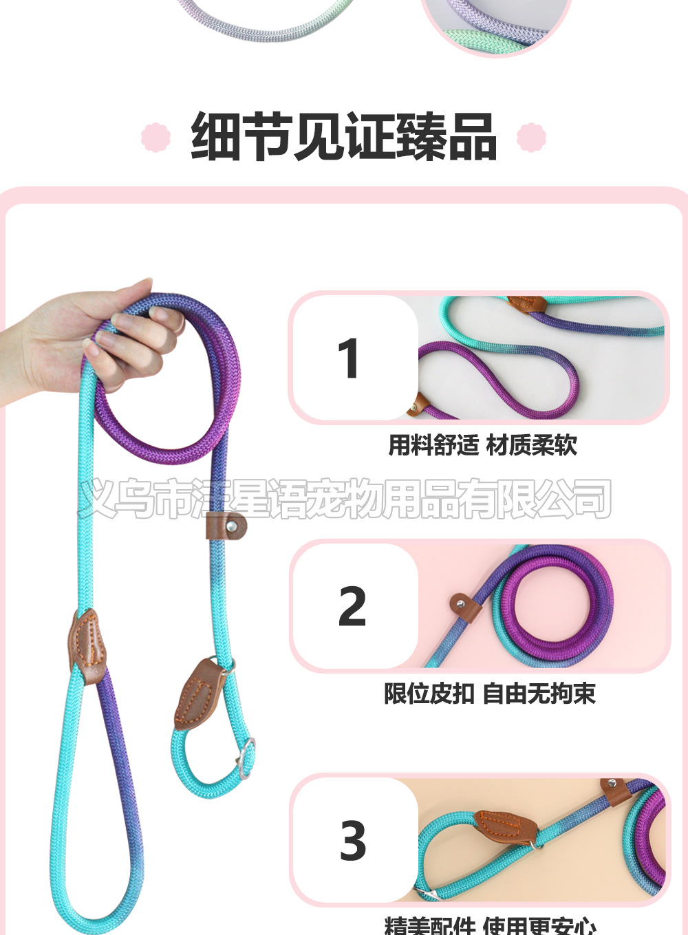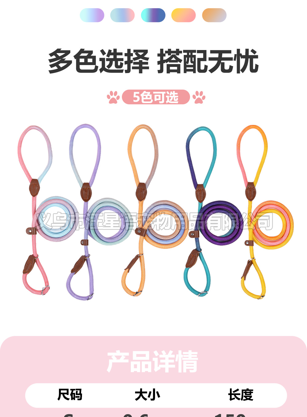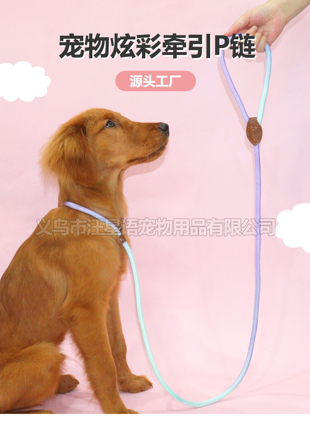 다채로운 애완 동물 견인 로프 P 체인 방폭 개 로프 내구성 두꺼운 나일론 개 걷는 조정 가능한 원형 로프스토어 가기
