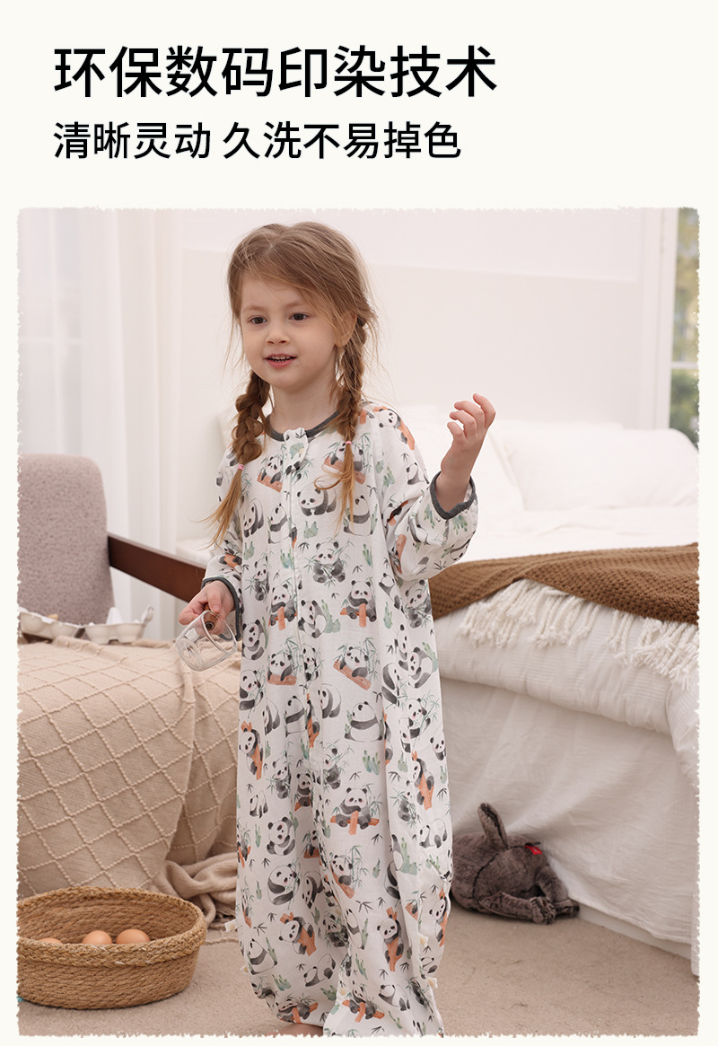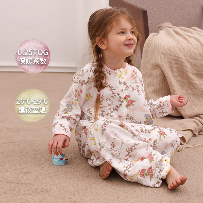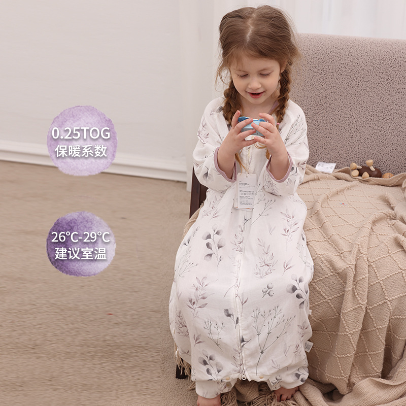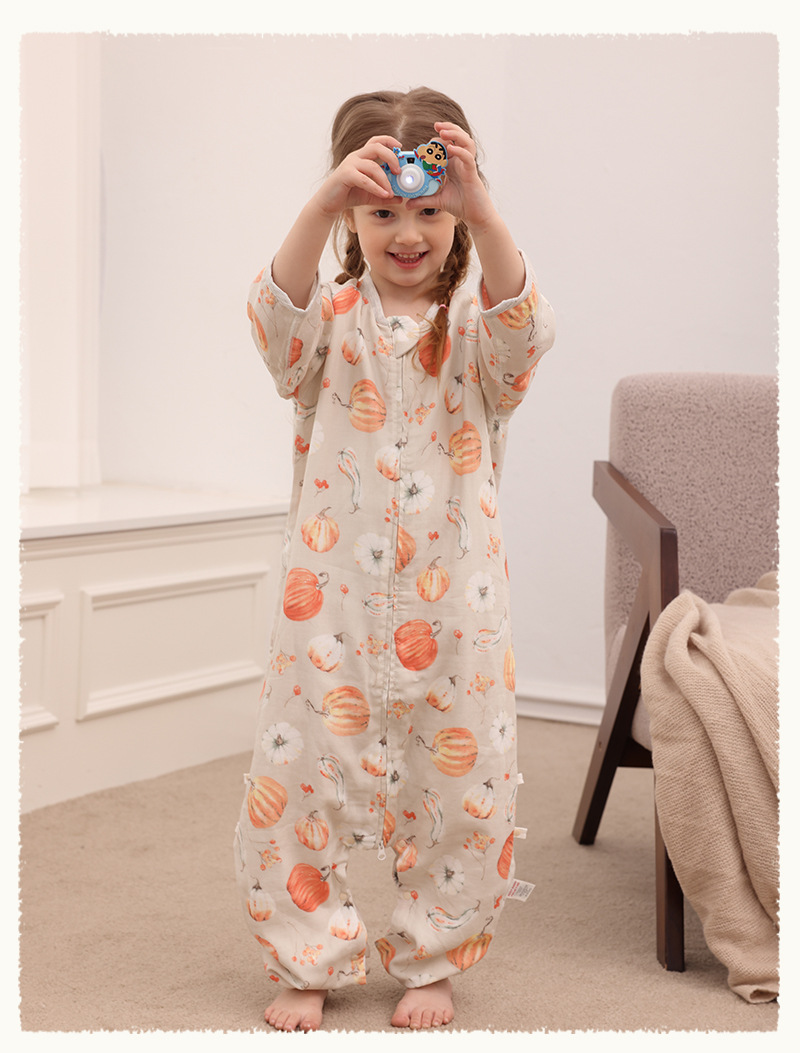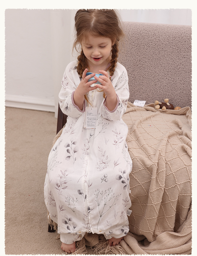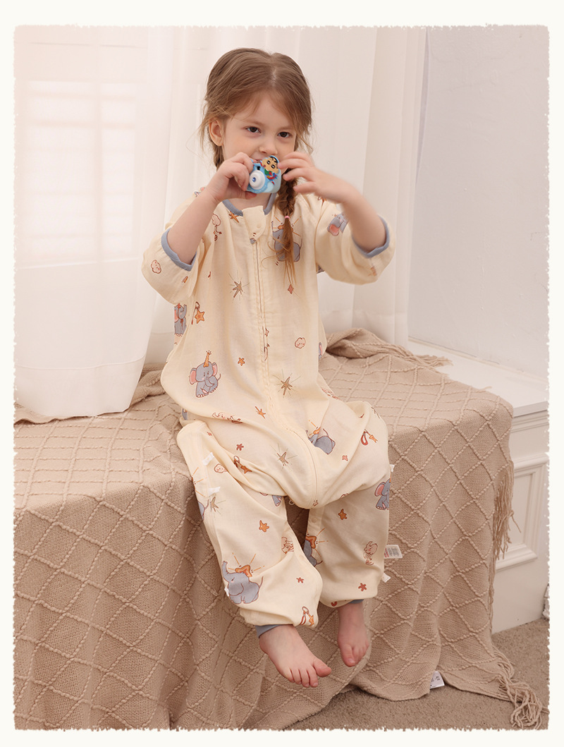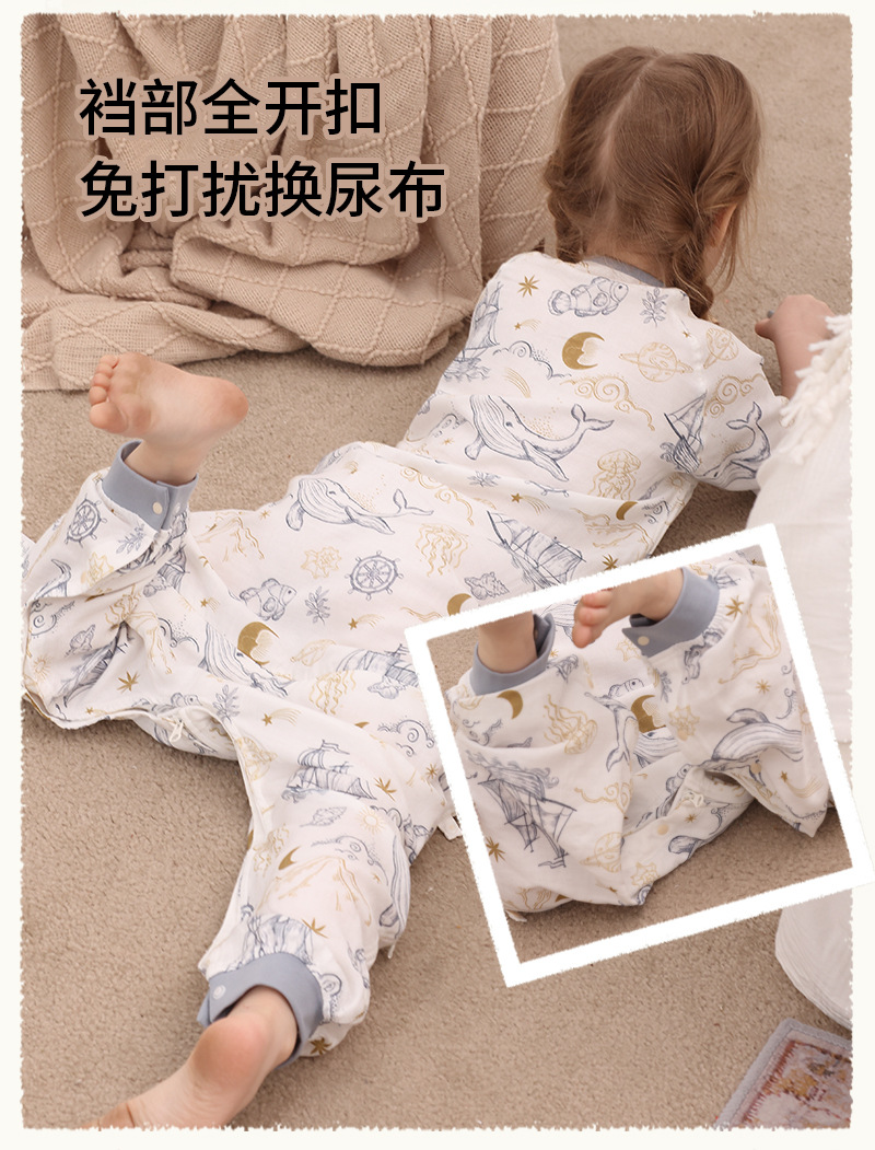 아기 침낭 이중층 대나무 면 거즈 어린이 봄, 가을, 여름 스타일 7부 소매 아기 다리 분리형 통기성 및 땀 흡수성