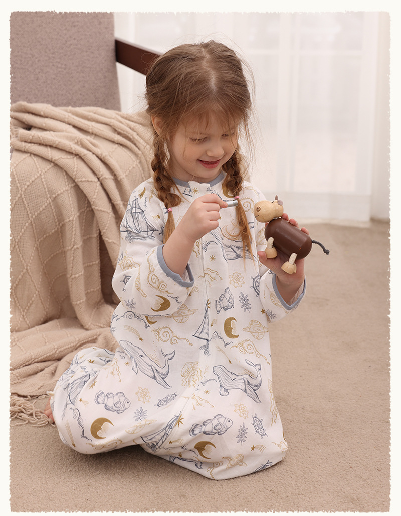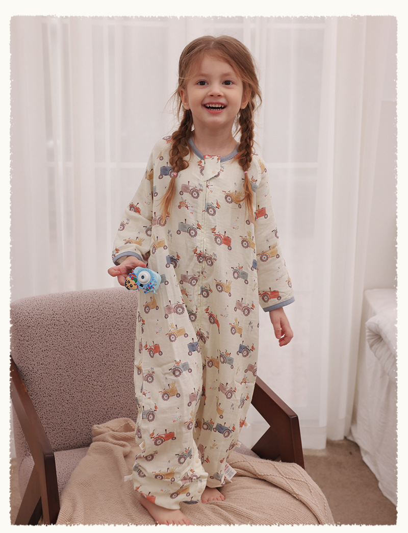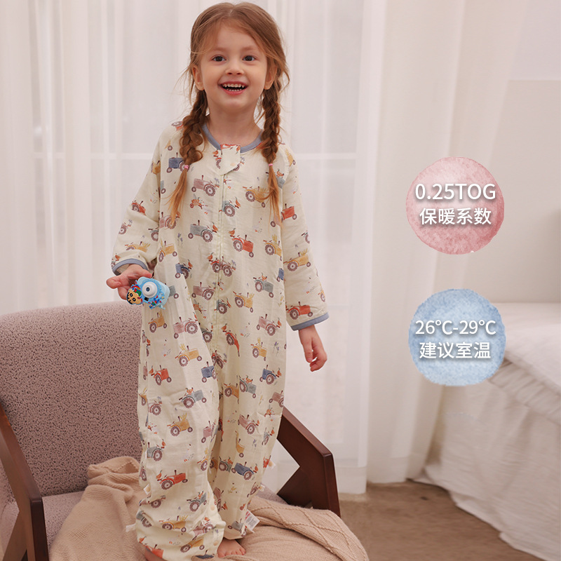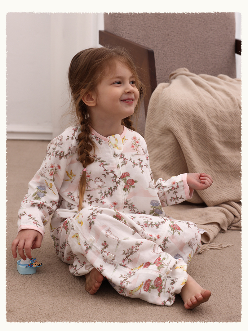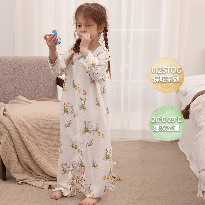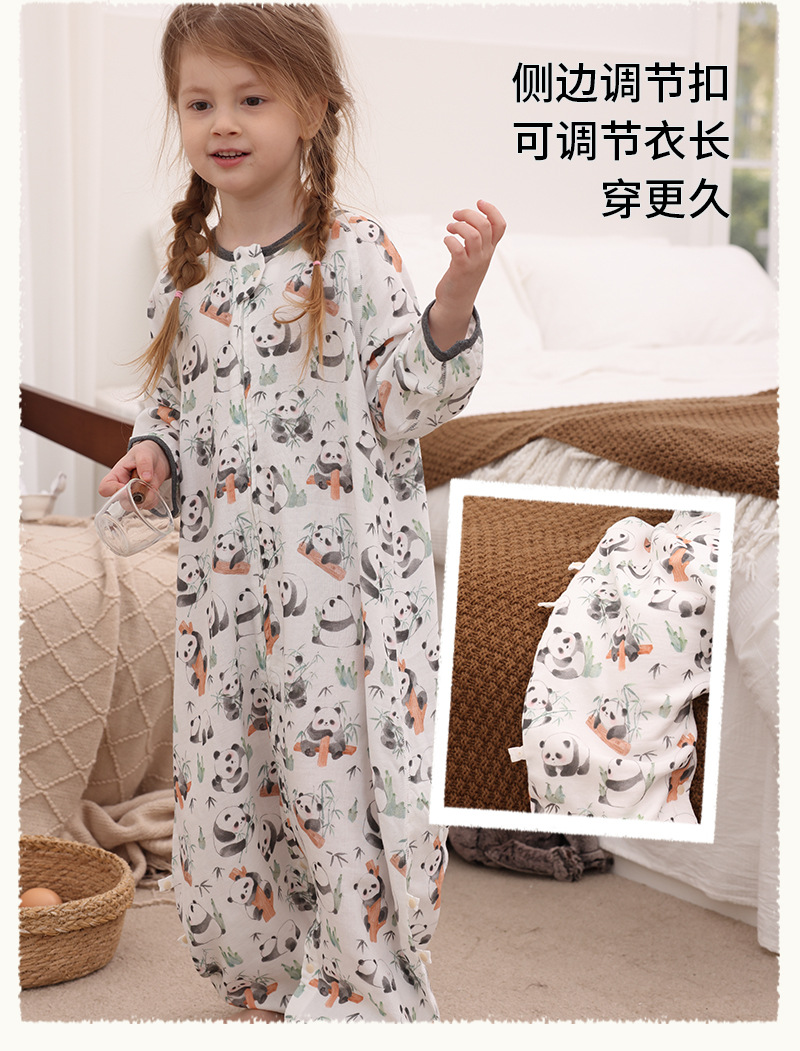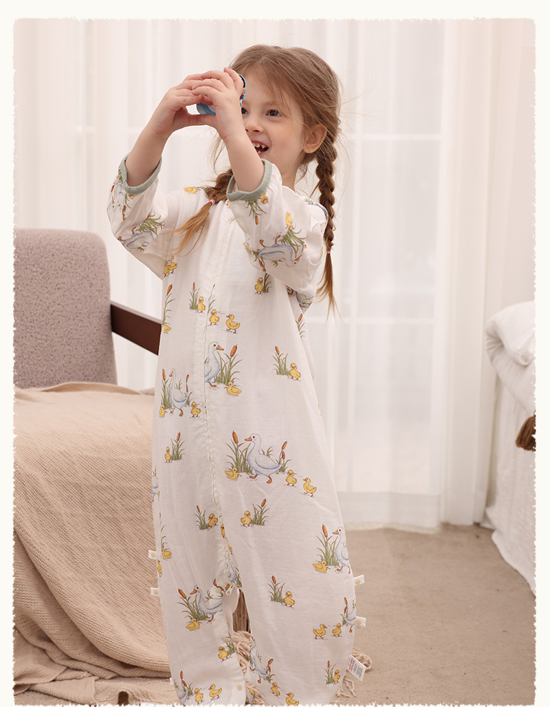 아기 침낭 이중층 대나무 면 거즈 어린이 봄, 가을, 여름 스타일 7부 소매 아기 다리 분리형 통기성 및 땀 흡수성