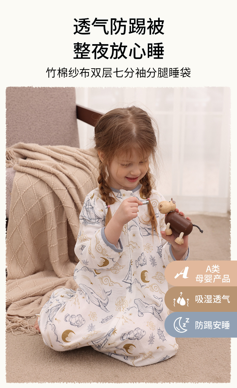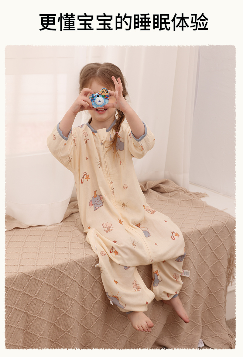 아기 침낭 이중층 대나무 면 거즈 어린이 봄, 가을, 여름 스타일 7부 소매 아기 다리 분리형 통기성 및 땀 흡수성스토어 가기