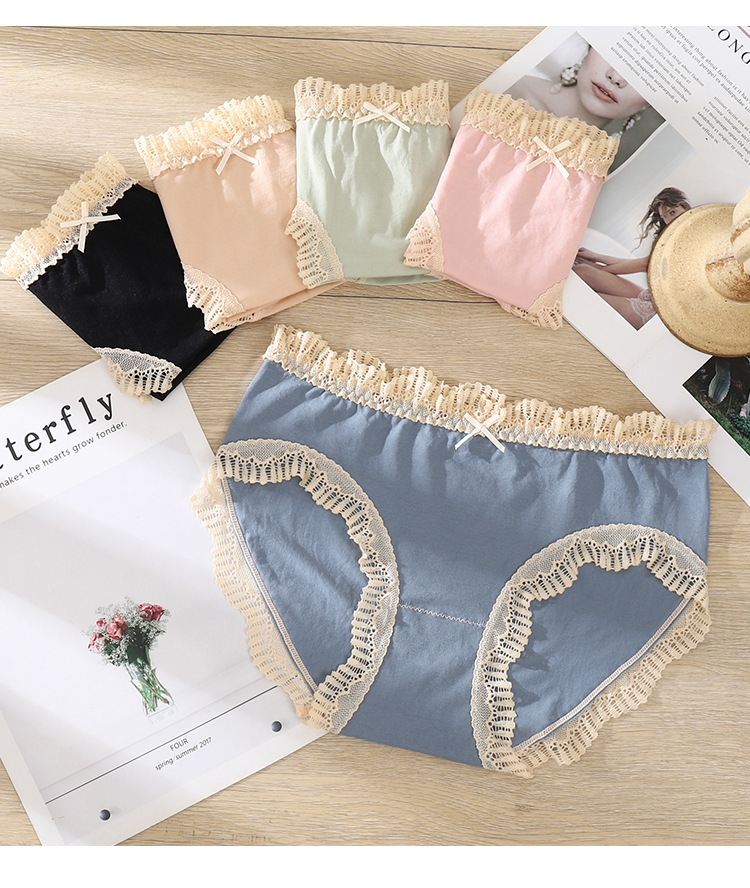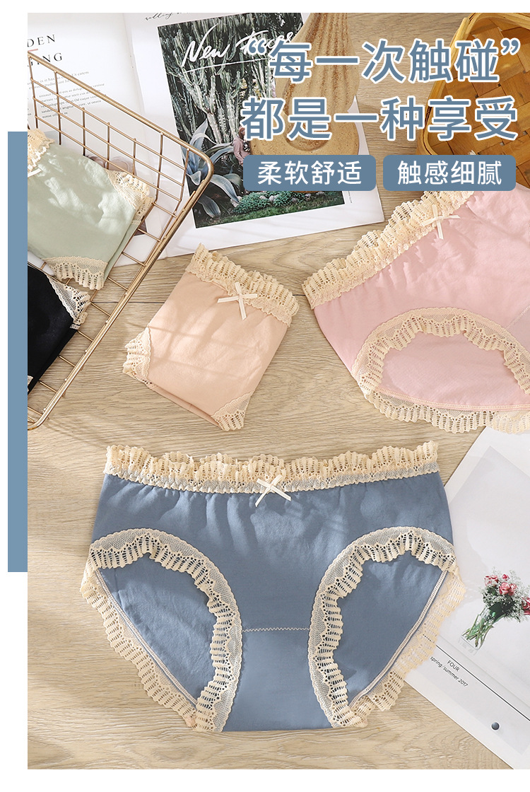 섹시한 원활한 속옷 여성의 순수한 욕망 레이스 중간 허리 원활한 여성의 순면 항균 높은 탄성 소녀의 바지
