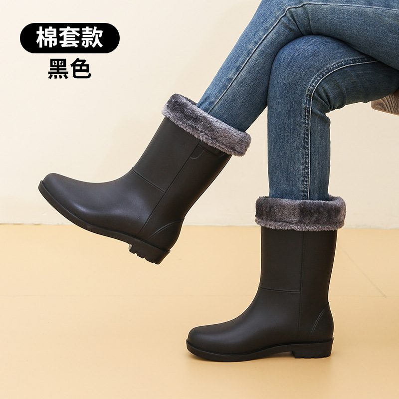 여성용 패셔너블한 장화, 종아리 중간 여성용 워터 슈즈, 여성용 성인 플러스 벨벳 장화, 미끄럼 방지 하프 튜브 워터 부츠, 여성용 고무신 도매스토어 가기