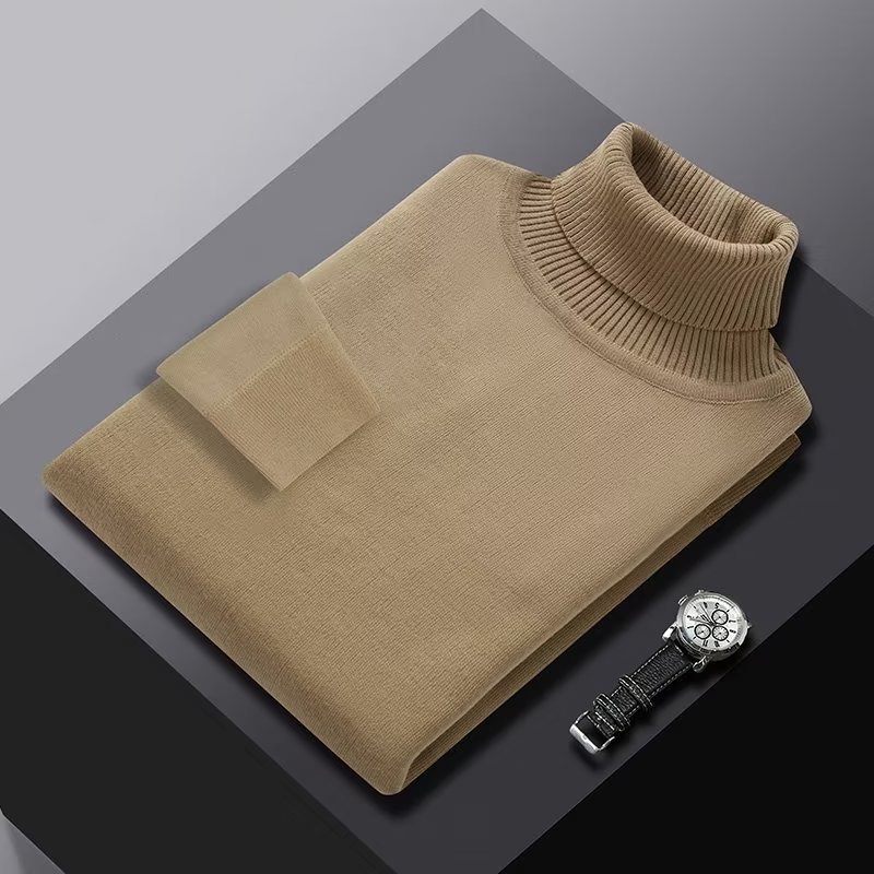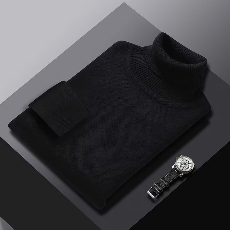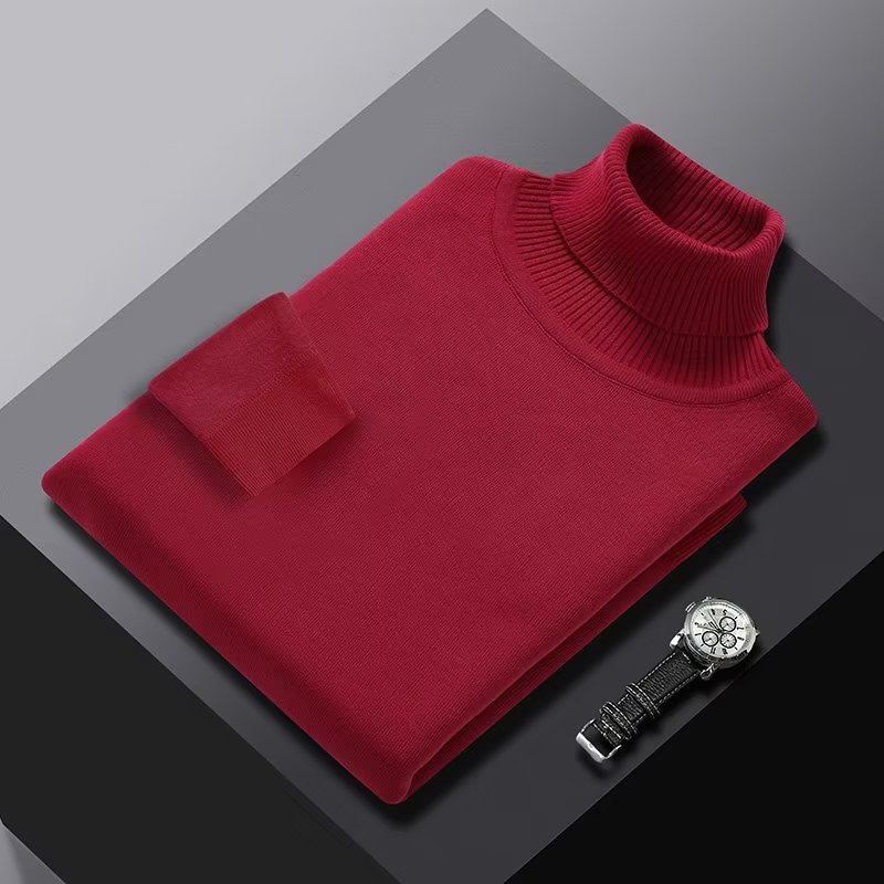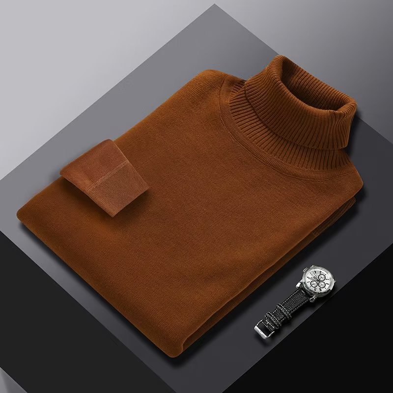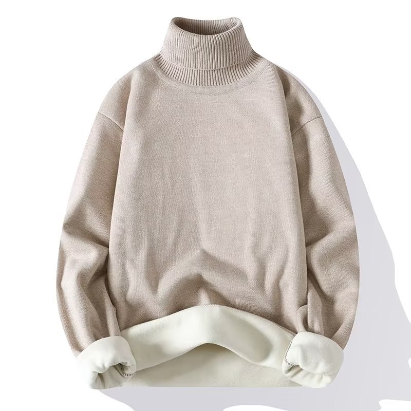 단색 하이 칼라 원피스 벨벳 스웨터 느슨한 풀오버베이스 스웨터 남성용 따뜻한 내부 조수