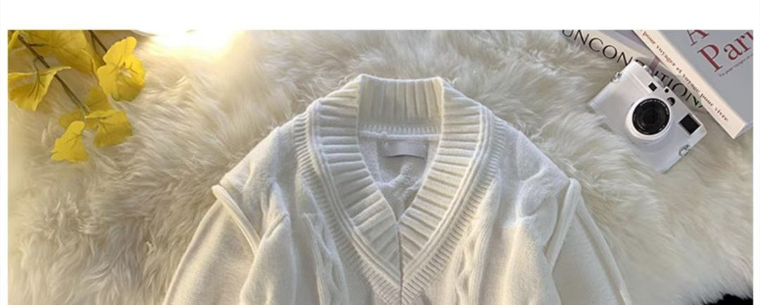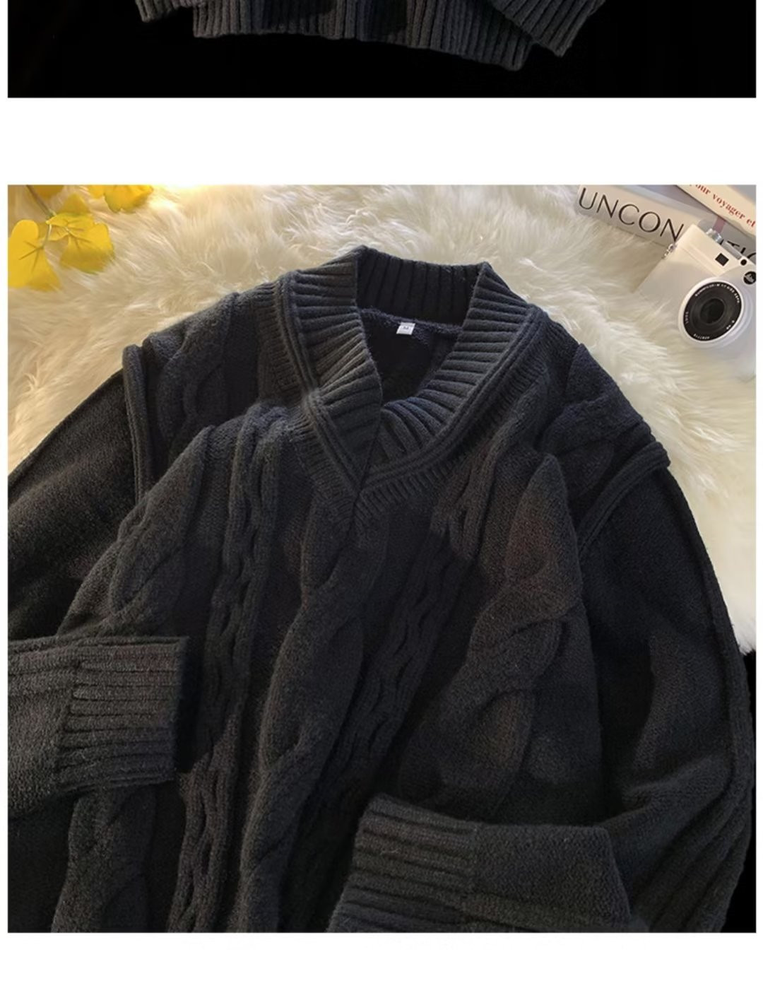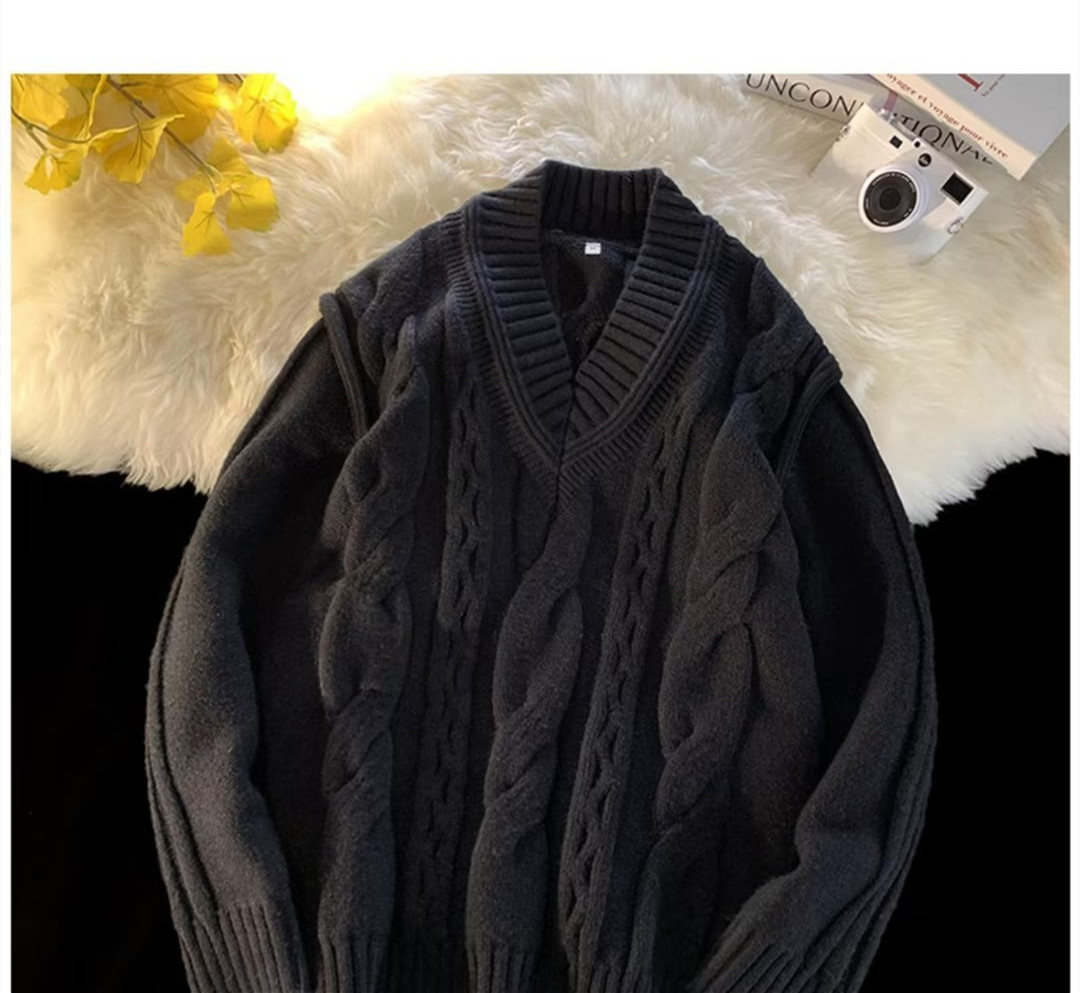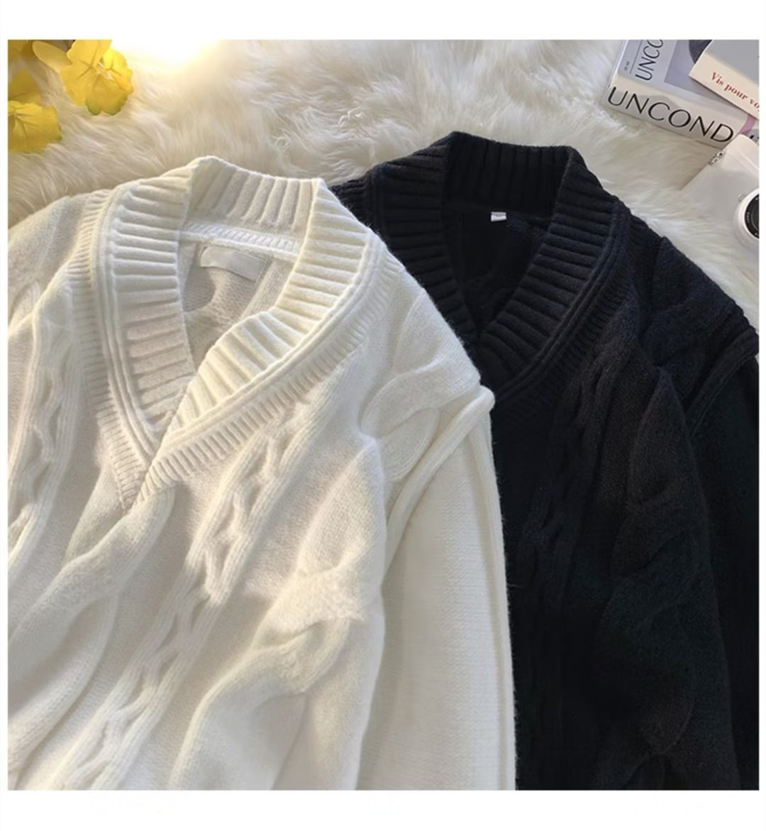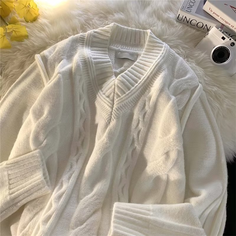 화이트 V-넥 디자인 스웨터 남자의 겨울 입체 트위스트 스웨터 패션 브랜드 레트로 느슨한 게으른 스타일 니트 스웨터스토어 가기