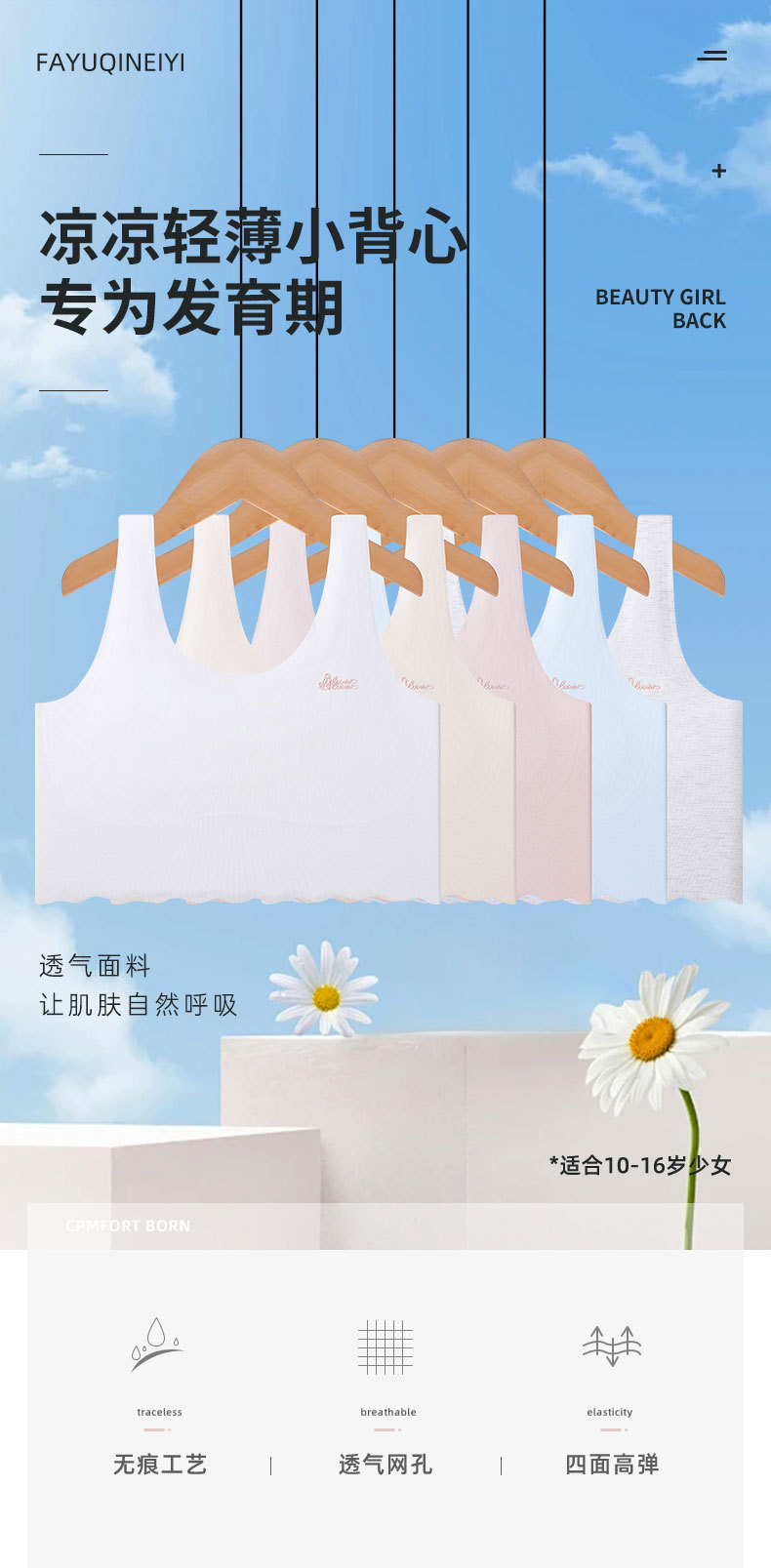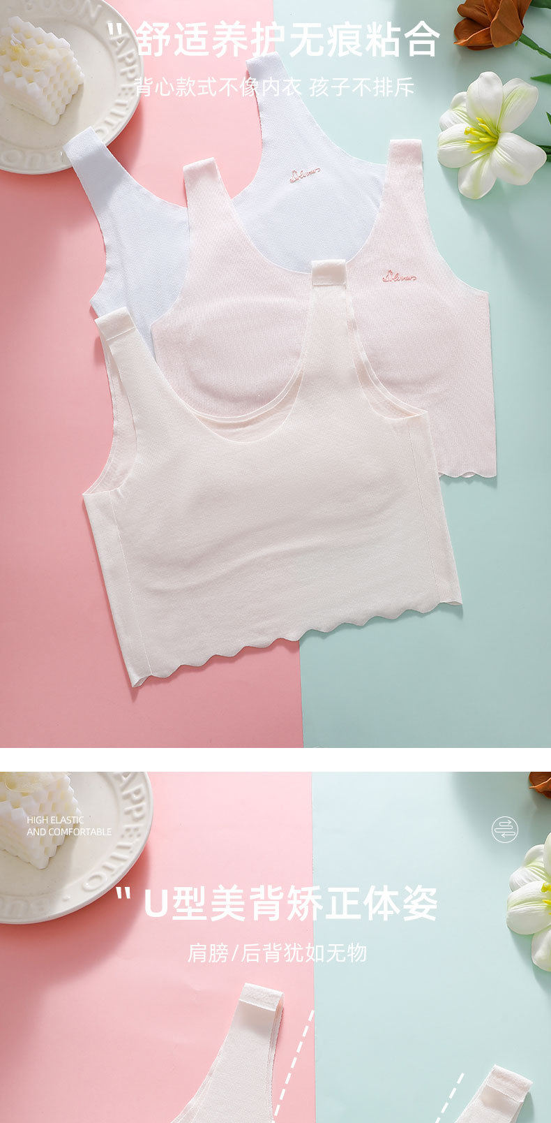 Omefen 봄과 여름 새로운 추적 없는 여아 조끼 청소년 여아 브래지어 학생 발달 여성 속옷