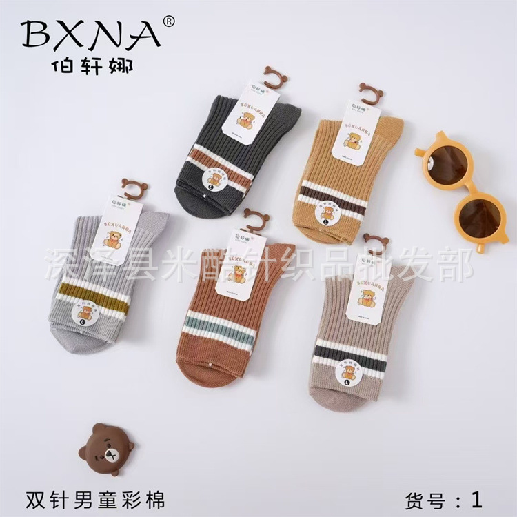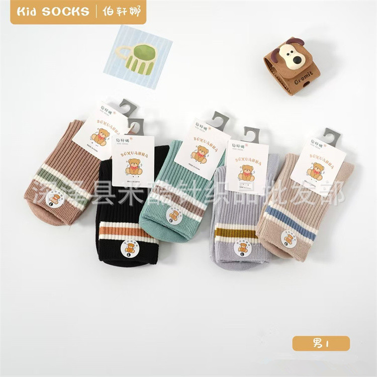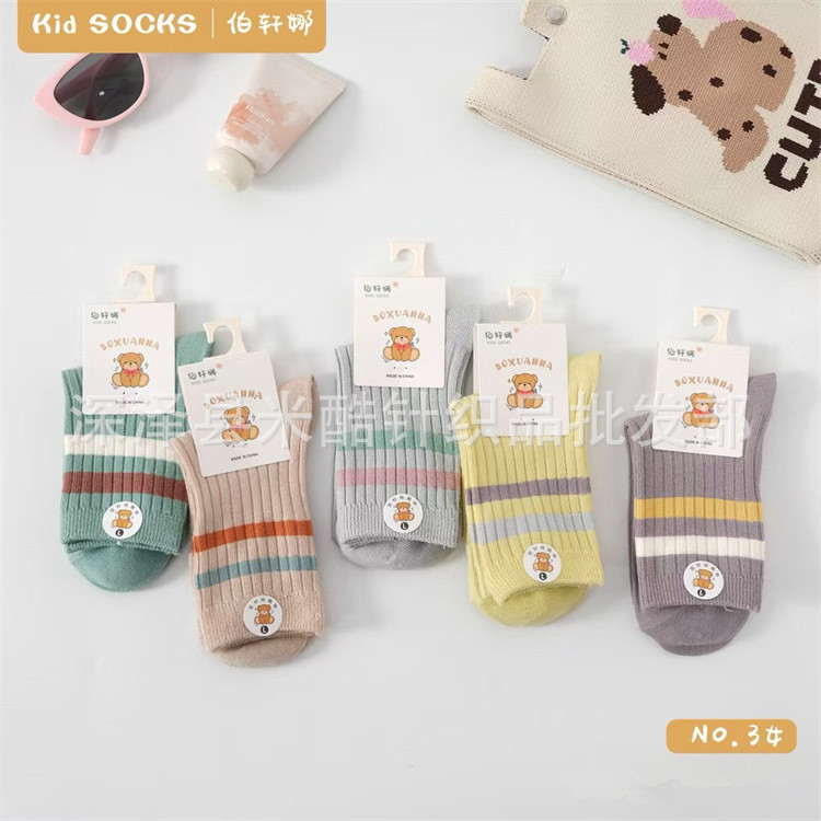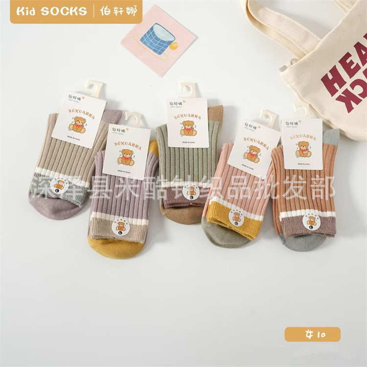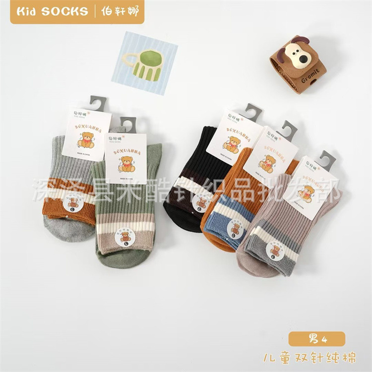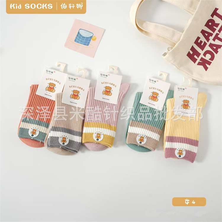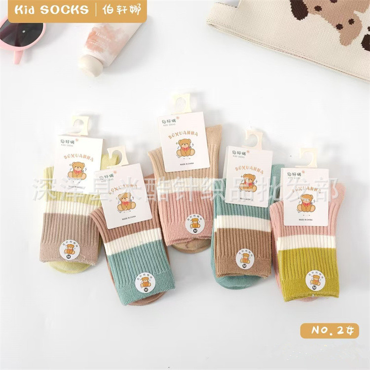 어린이 가을 겨울 신상품 이중 바늘 두꺼운 중간 길이 면 양말 배색 줄무늬 남녀 아기 양말 도매 공급스토어 가기