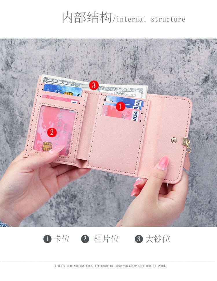새 지갑 여성용 짧은 한국 스타일 여성 학생 소형 지갑 3 중 다기능 대용량 동전 지갑 카드 홀더