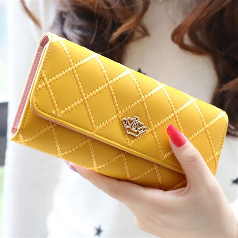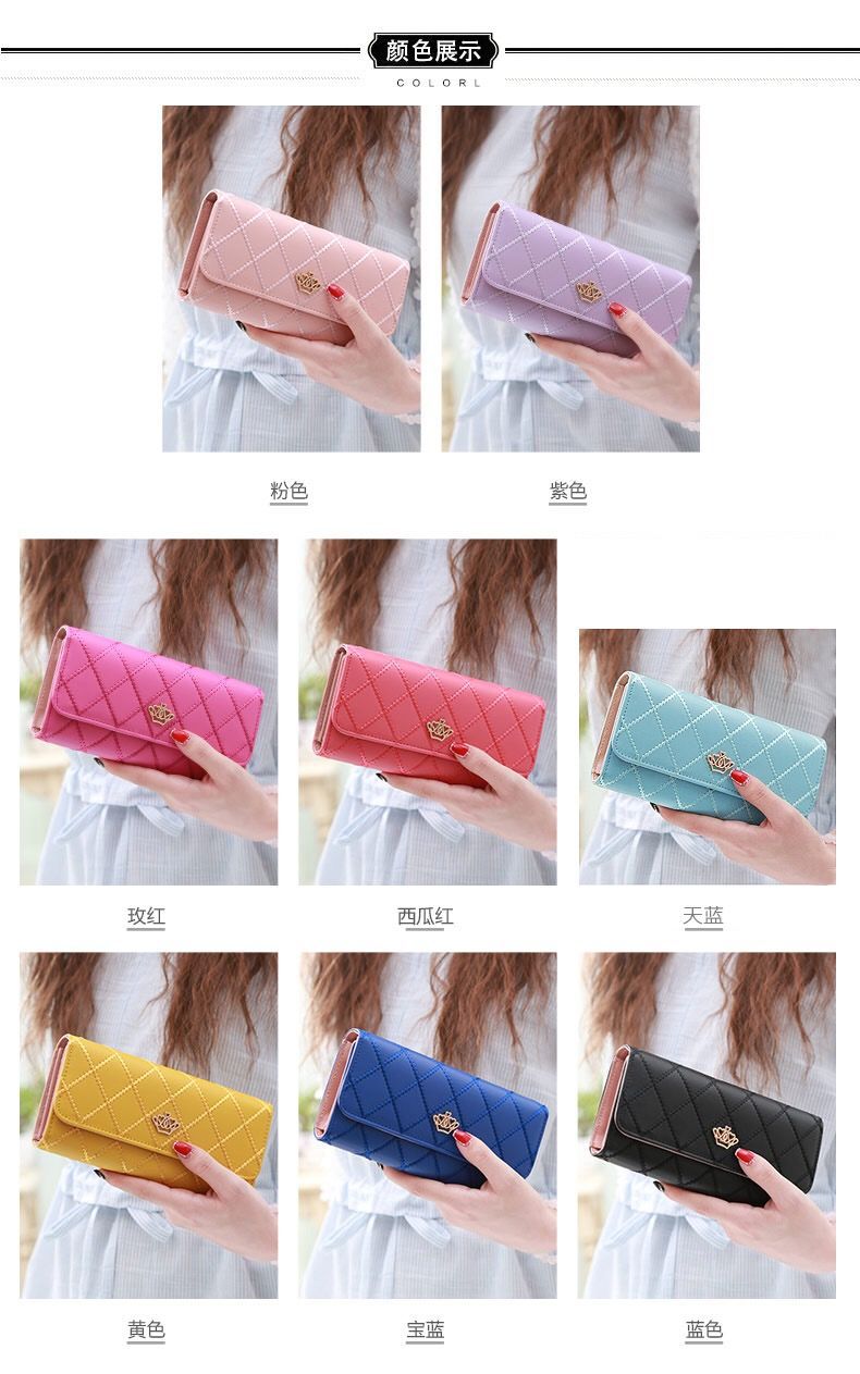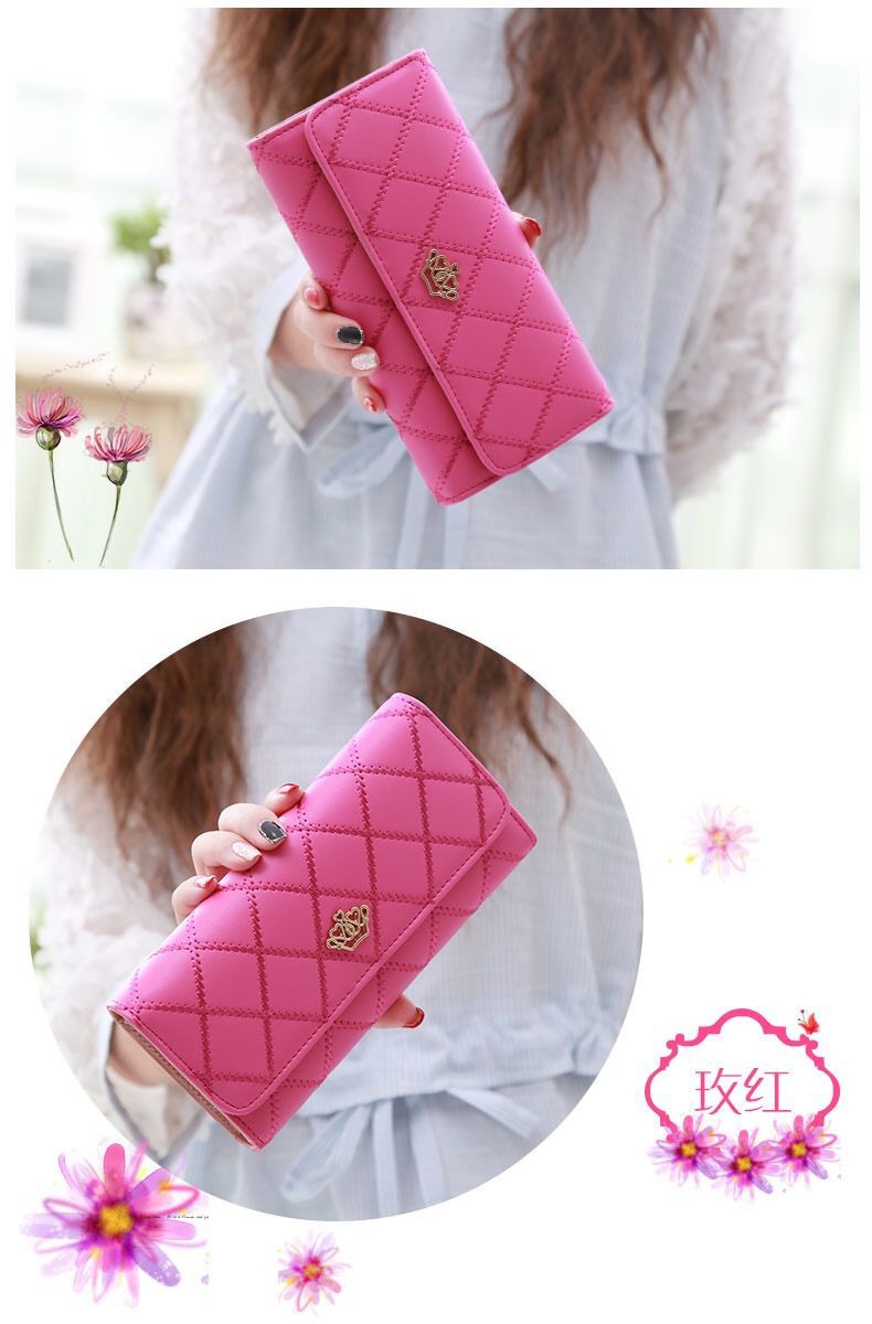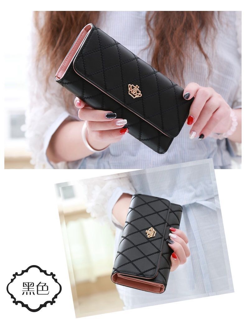 새로운 유행 지갑 여성용 대용량 소녀의 긴 지갑 트렌디 얇은 패션 휴대 전화 가방 마름모꼴 금속 크라운 지갑스토어 가기