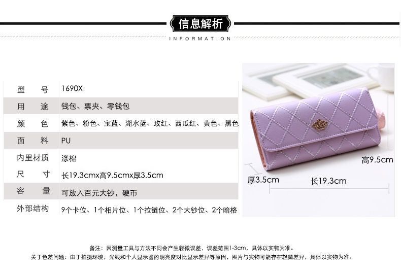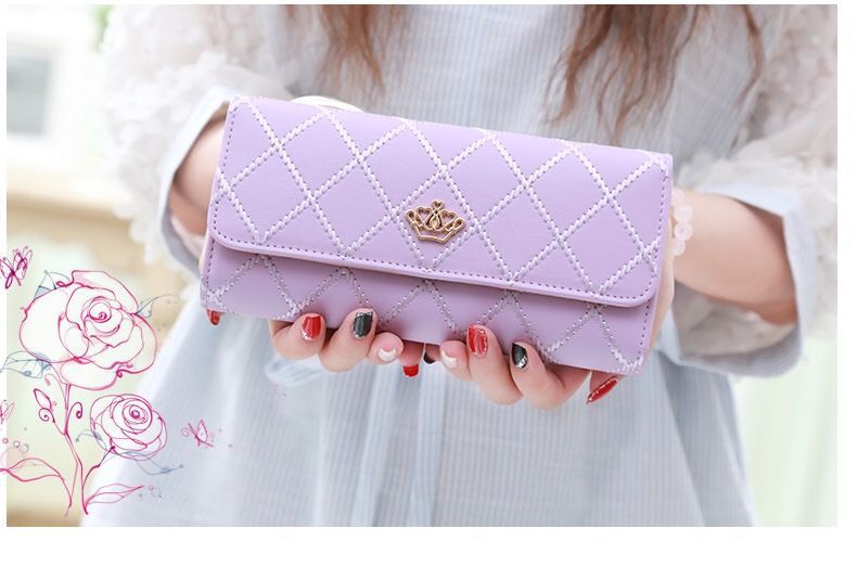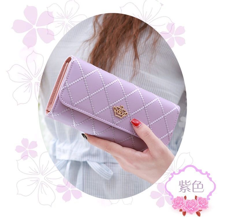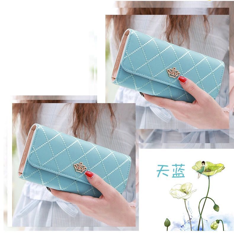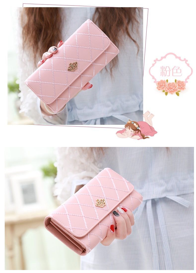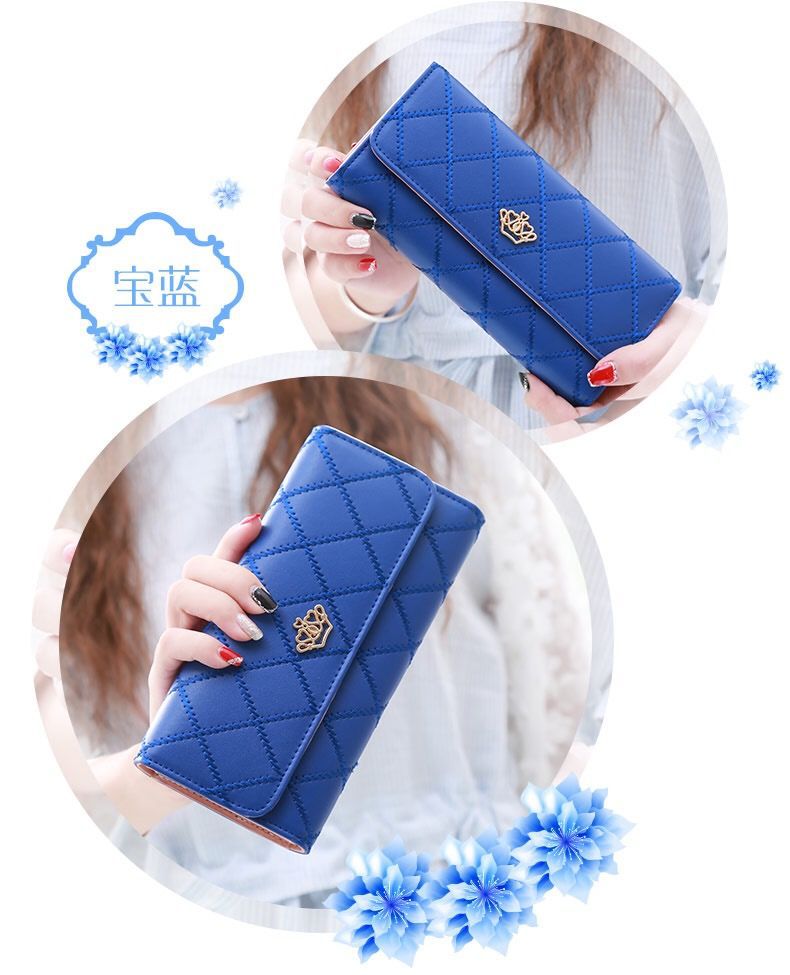새로운 유행 지갑 여성용 대용량 소녀의 긴 지갑 트렌디 얇은 패션 휴대 전화 가방 마름모꼴 금속 크라운 지갑스토어 가기