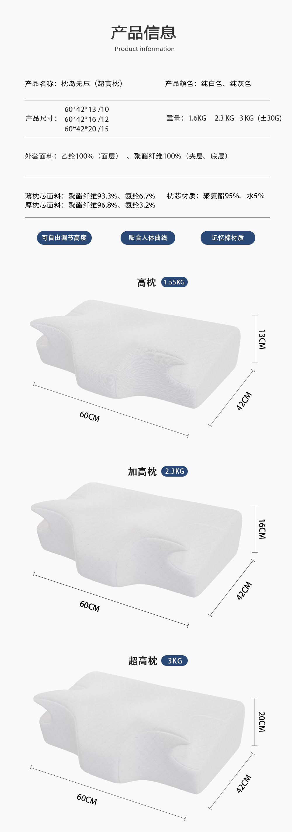 메모리 베개 헤드 베개 커버 지방 특수 베개 높은 두꺼운 자궁 경부 베개는 변형되지 않습니다 베개 제조 업체 도매 붕괴