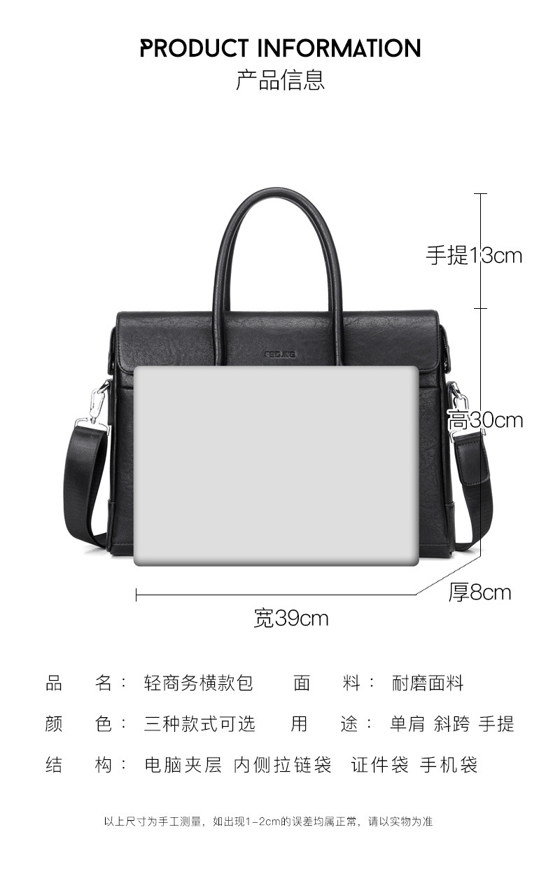 브랜드 남성 비즈니스 서류 가방 대용량 숄더백 사무실 핸드백 통근 캐주얼 방수 크로스바디 남성 가방스토어 가기