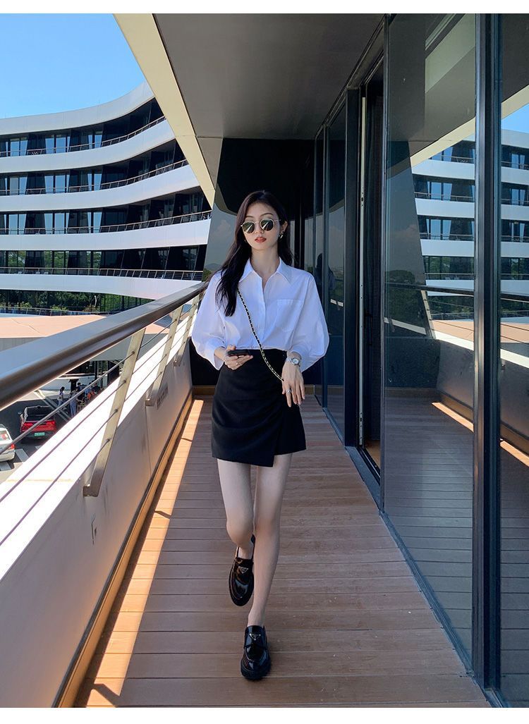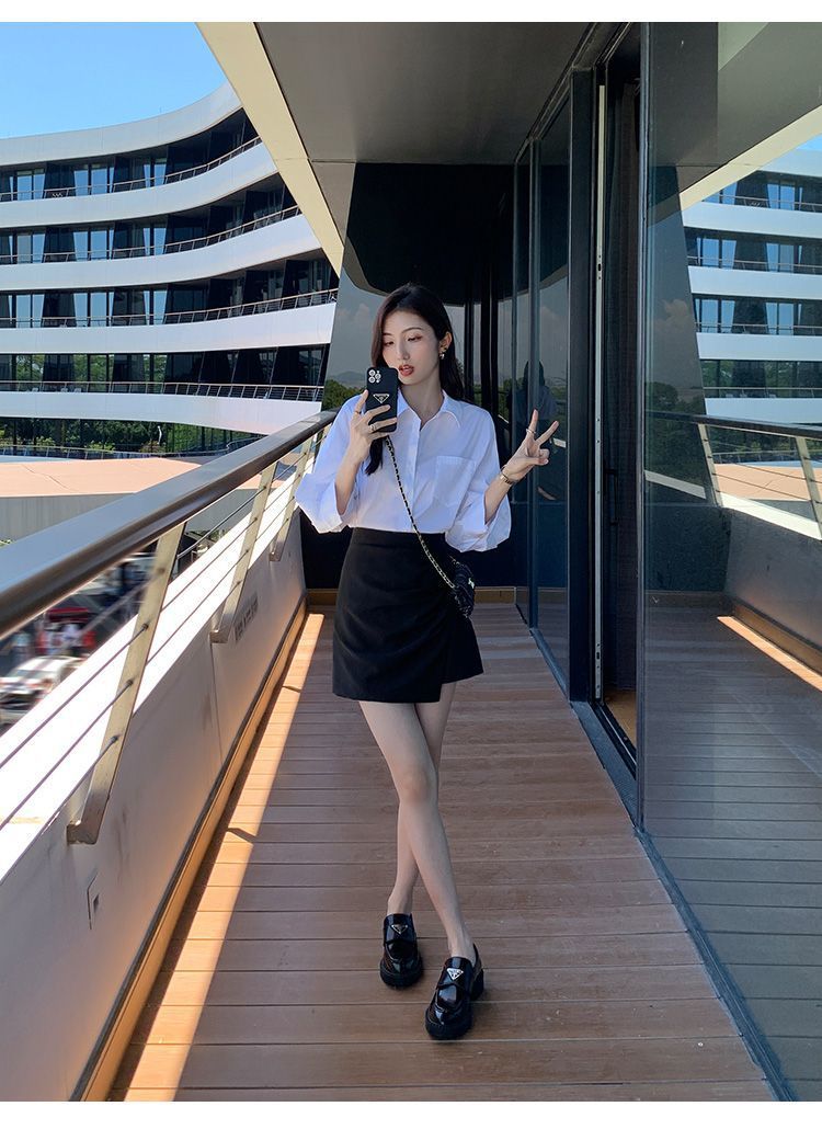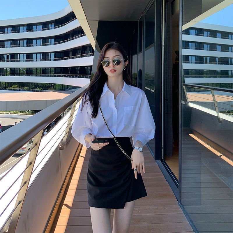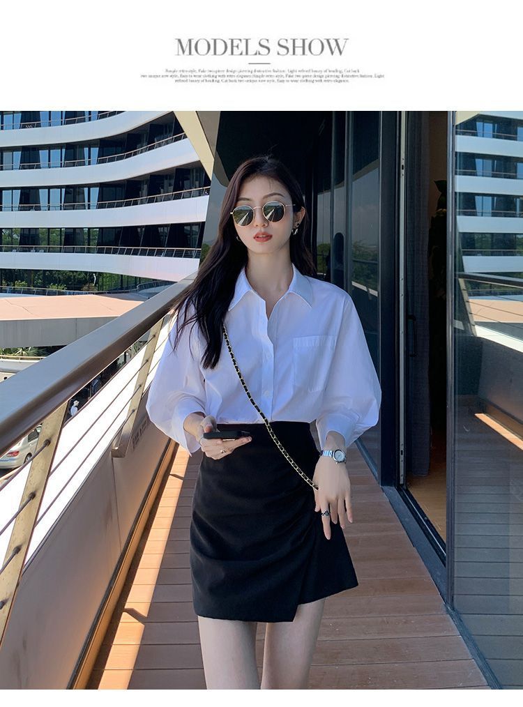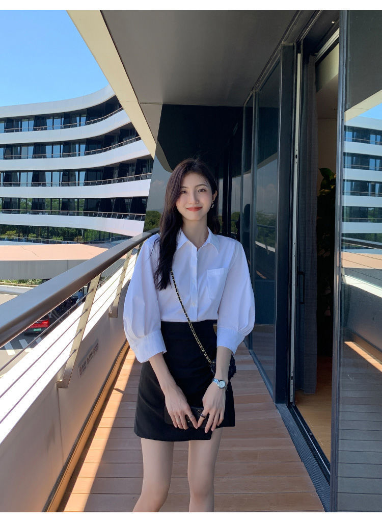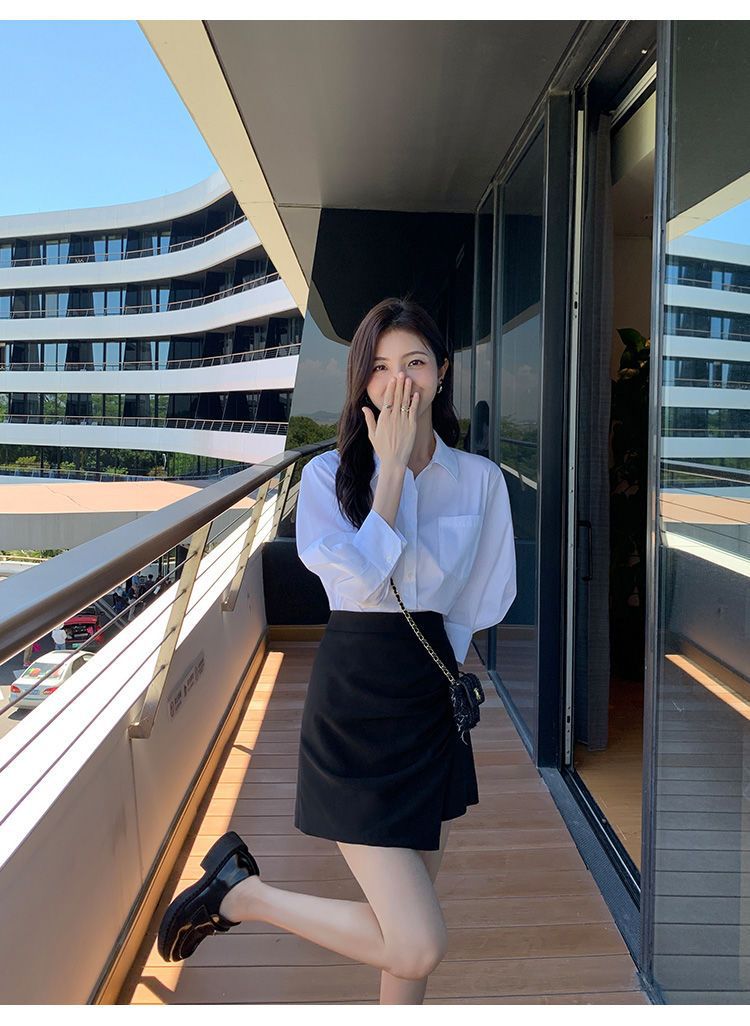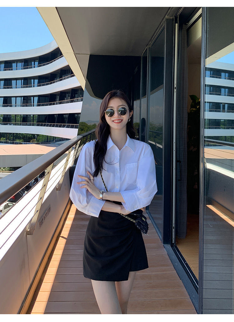 흰색 셔츠 여성 느슨한 2025 여름 한국 스타일 새로운 간단한 전문 탑 다목적 7부 소매 셔츠