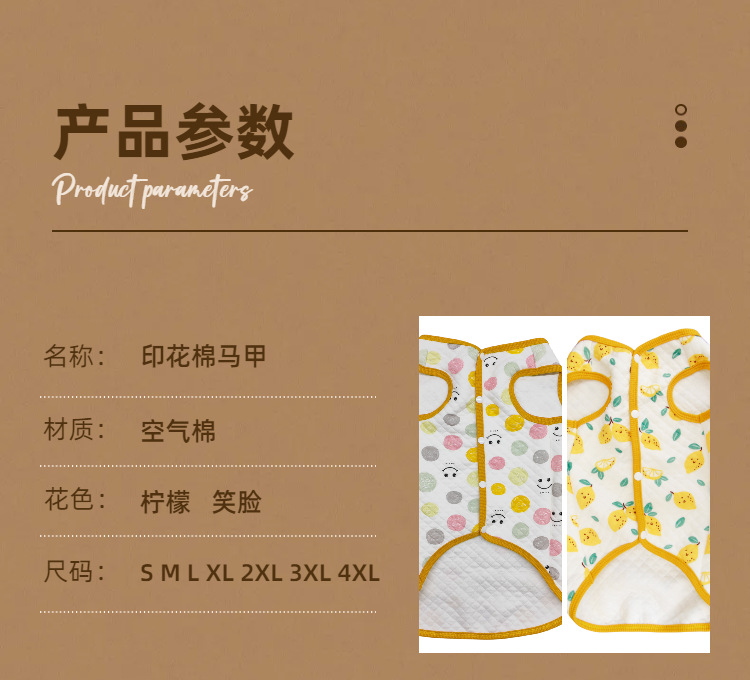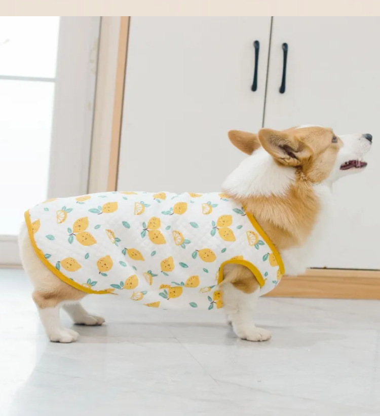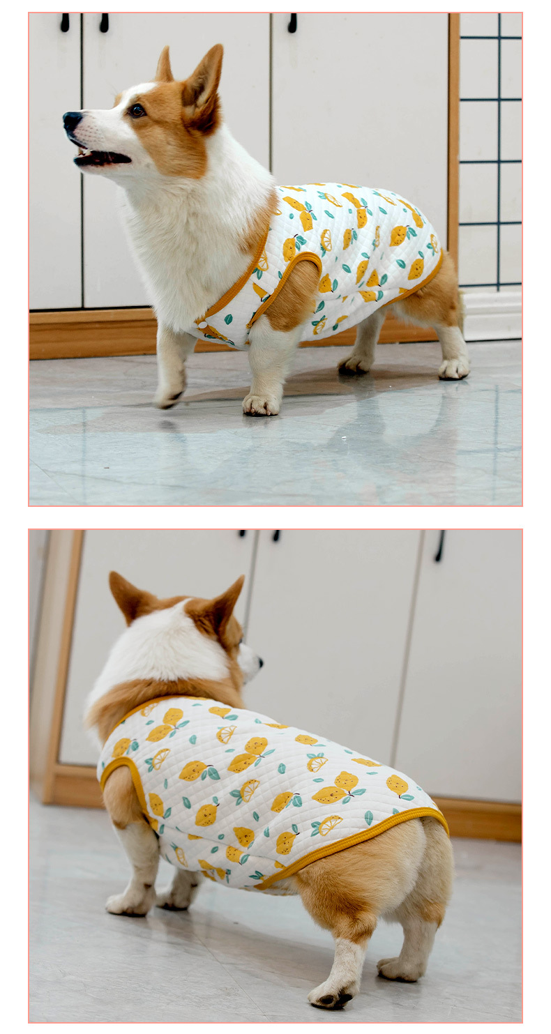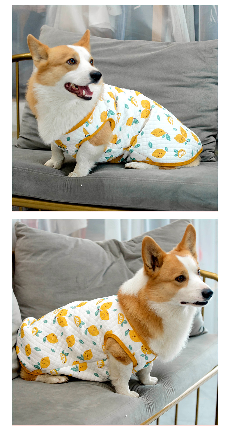 만화 개 의류 신선한 레몬 조끼 가을과 겨울 따뜻한 개 옷을 사용자 정의 할 수 재고 도매스토어 가기