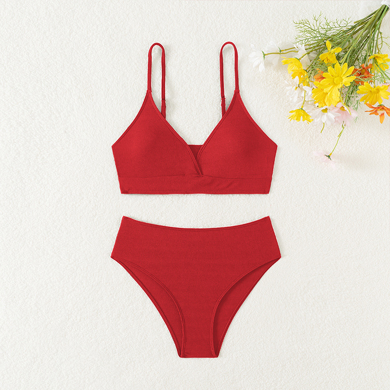 亚马逊欧美新款紧身分体泳衣女士性感深V高腰比基尼外贸爆款泳装