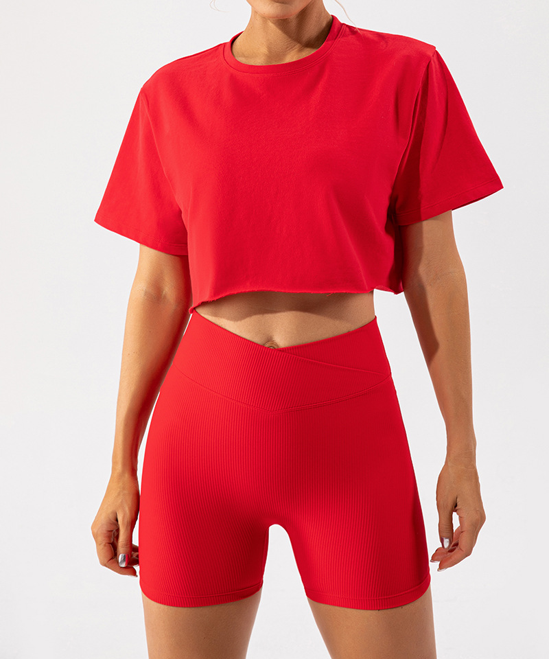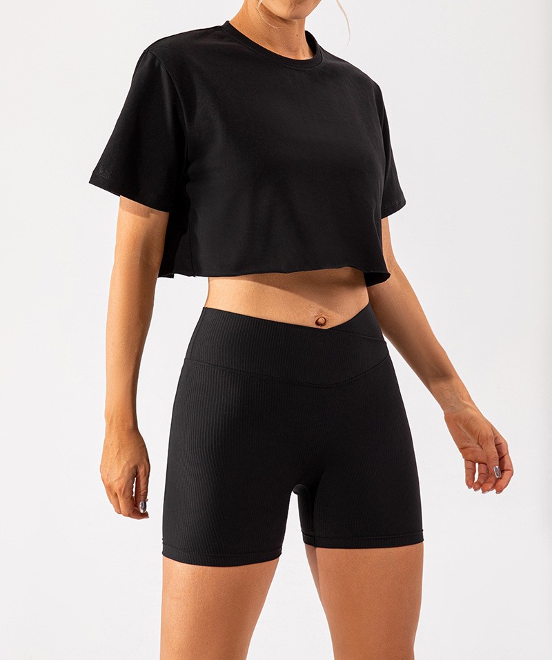 신상 유럽풍 복부 보정 피트니스 반바지 복숭아힙 업 스포츠 요가 팬츠 하이웨이스트 골지 타이트 슬림 힙업