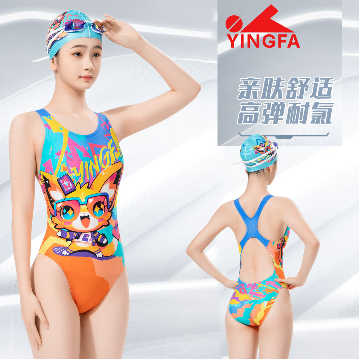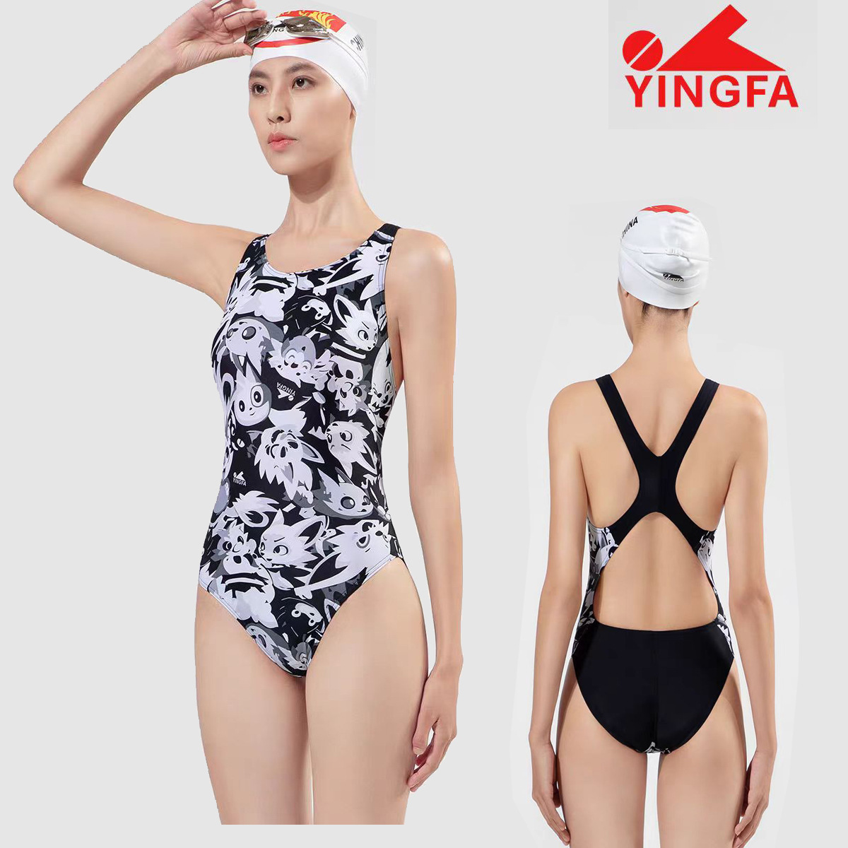 Yingfa 인쇄 전문 수영복 여자의 삼각형 원피스 엉덩이 보여주는 그림 훈련 대회 수영 세트