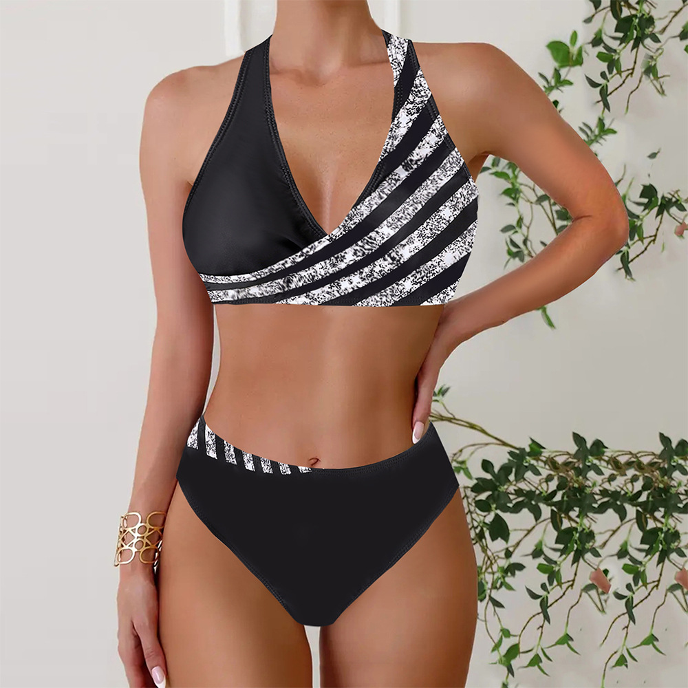 2025 신상 비키니 유럽 및 미국 스타일 분리형 프린트 수영복 여성용 스플라이스 푸쉬업 비키니 수영복 아마존