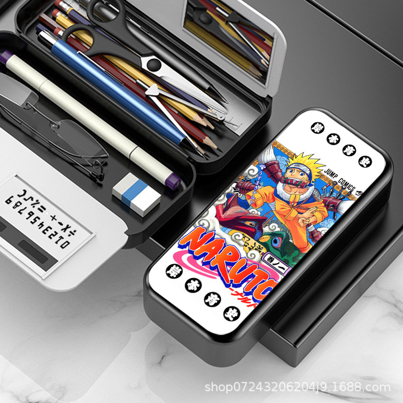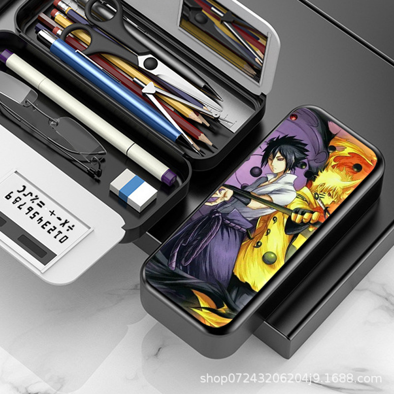 나루토 나루토 사스케 초중등 학생 다기능 거울 계산기 필통 필통 재고 도매스토어 가기