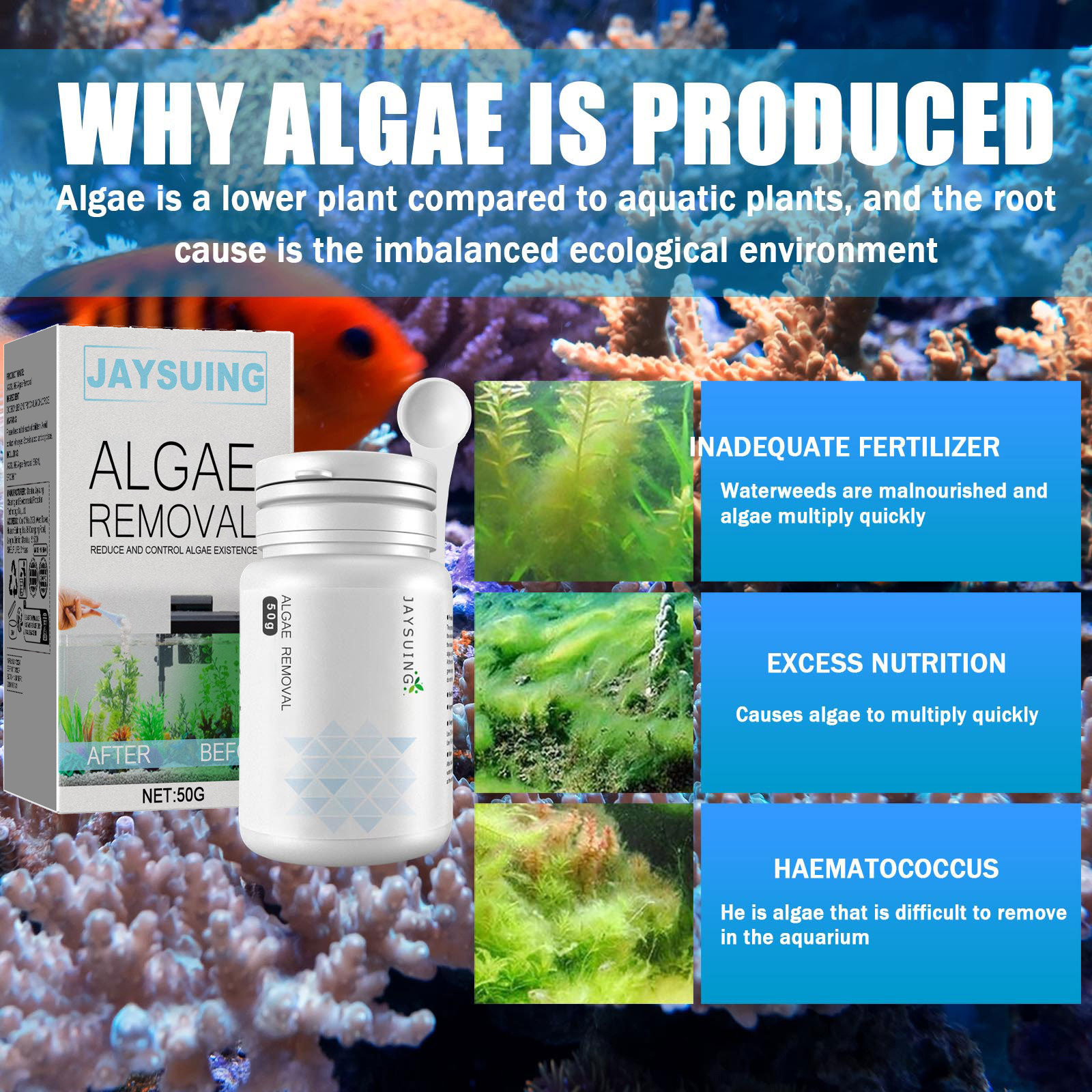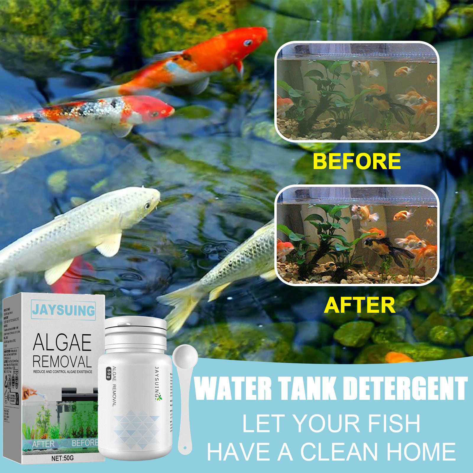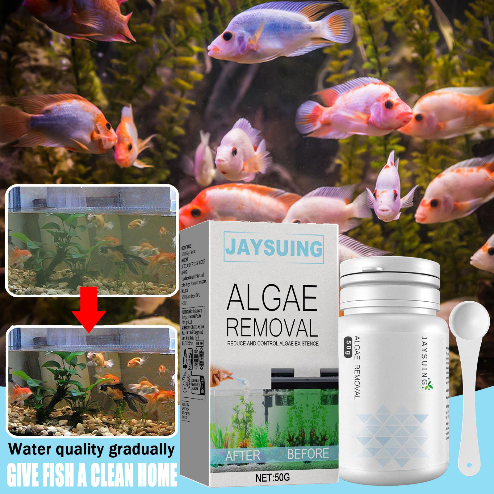 Jaysuing 조류 제거 물약 녹색 이끼 수족관 조류 제거 물약 어항 이끼 제거제스토어 가기