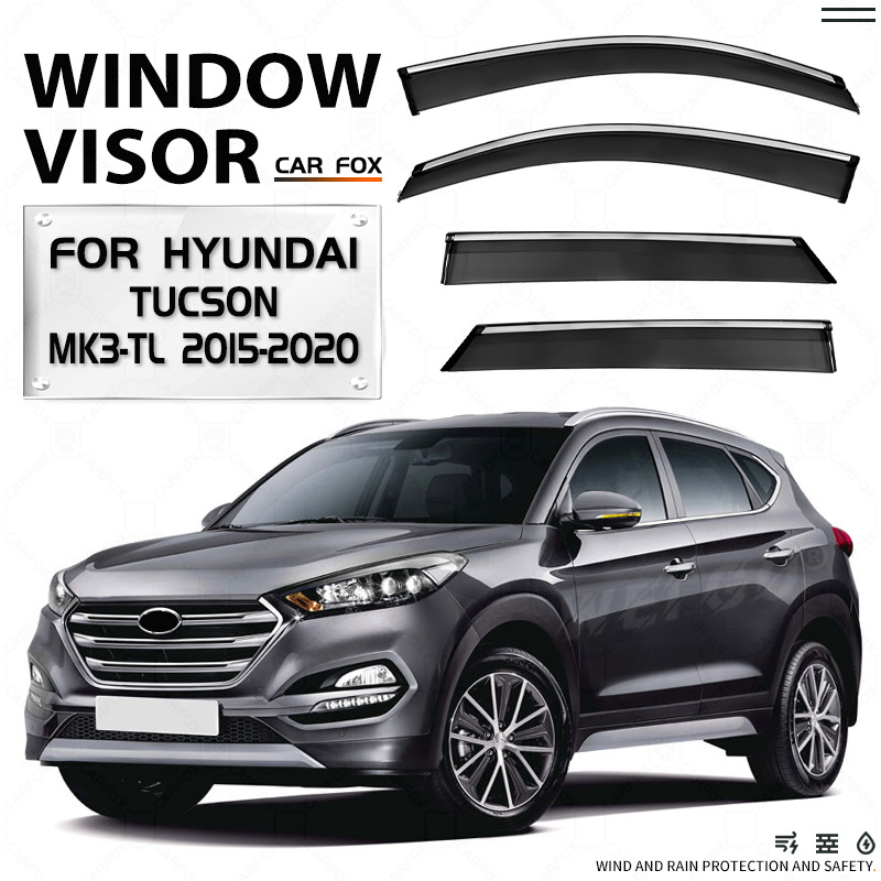 현대 투손 레인 쉴드 백미러 비 눈썹 사이드 윈도우 디플렉터 TUCSON 윈도우 바이저에 적합