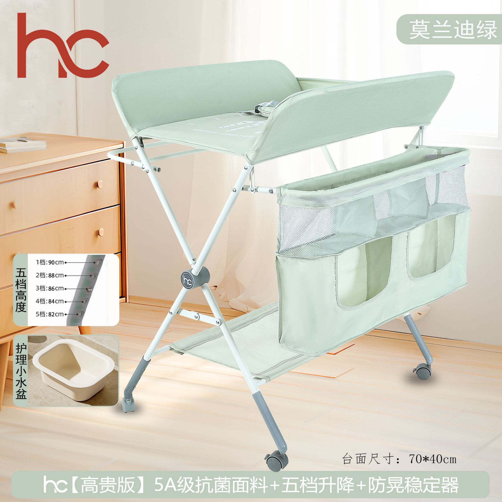 • 모란디 그린 [플래그십 에디션 + 더블 레이어 포켓] 5A 항균 + 5단 리프트 + 안정 장치 + 브레이크가 있는 범용 휠 + 무료 소형 세면대