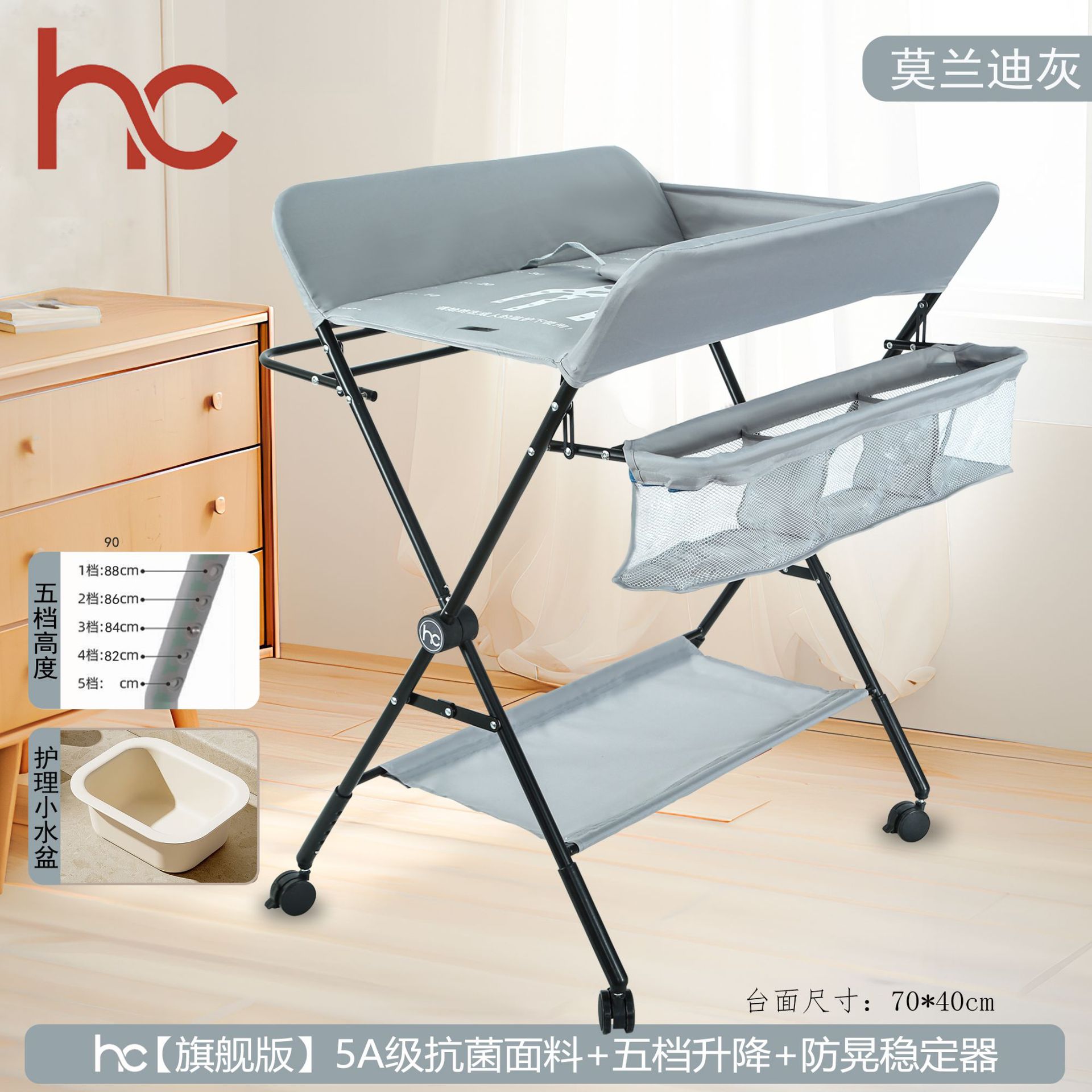 • 모란디 그레이 [플래그십 에디션 + 더블 레이어 포켓] 5A 항균 + 5단 리프트 + 안정 장치 + 브레이크가 있는 범용 휠 + 무료 소형 세면대